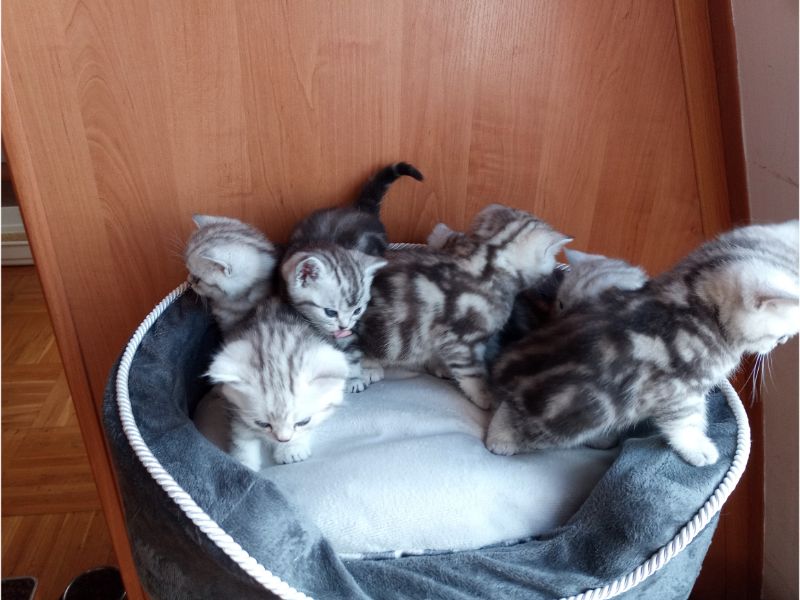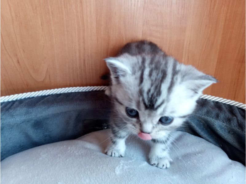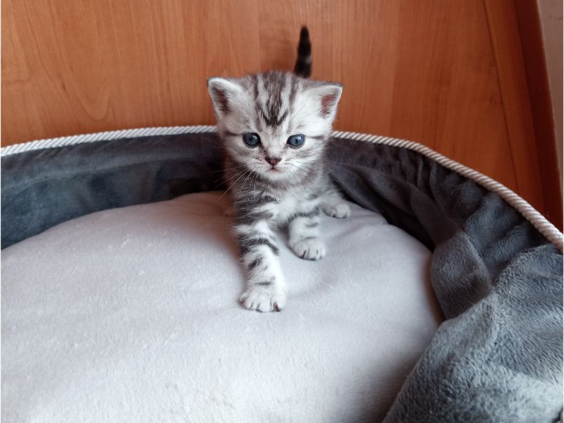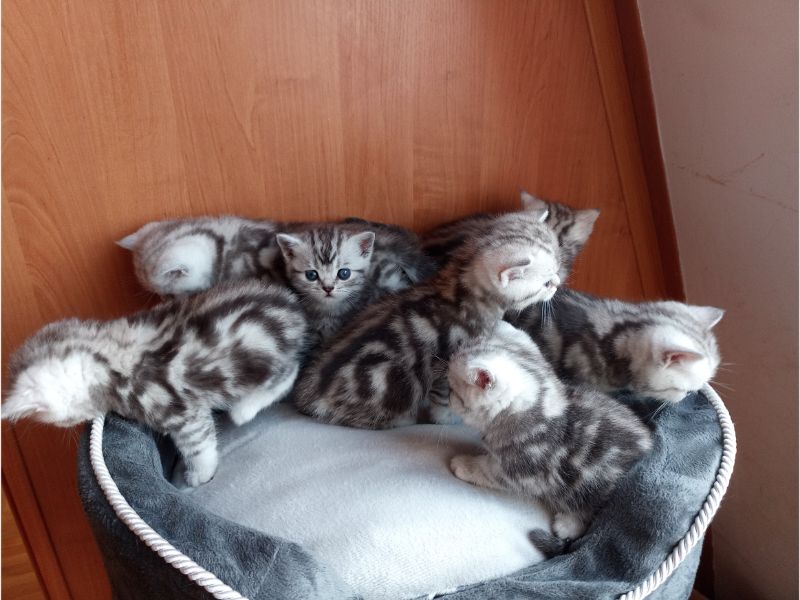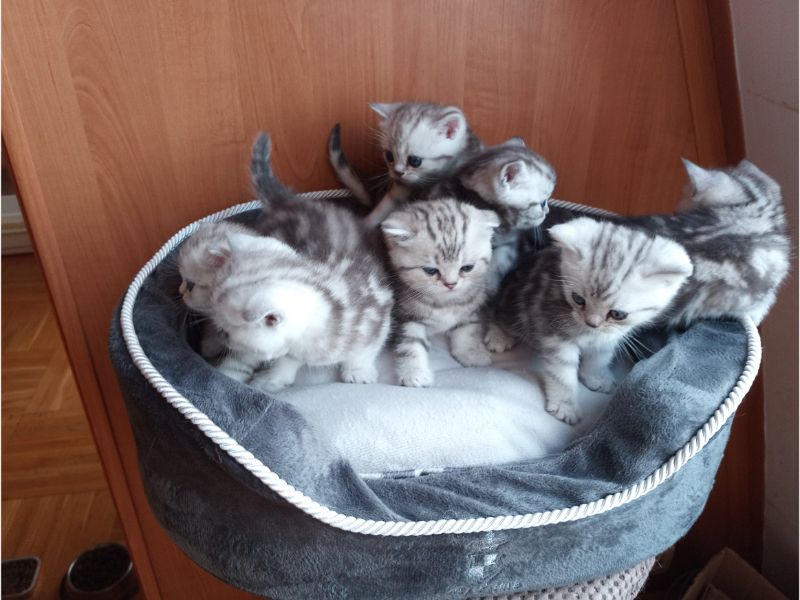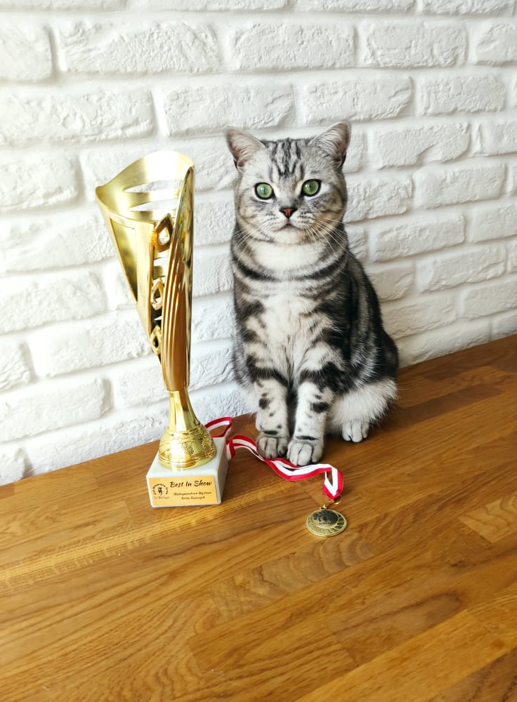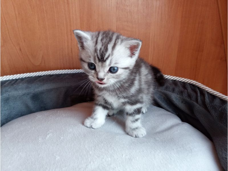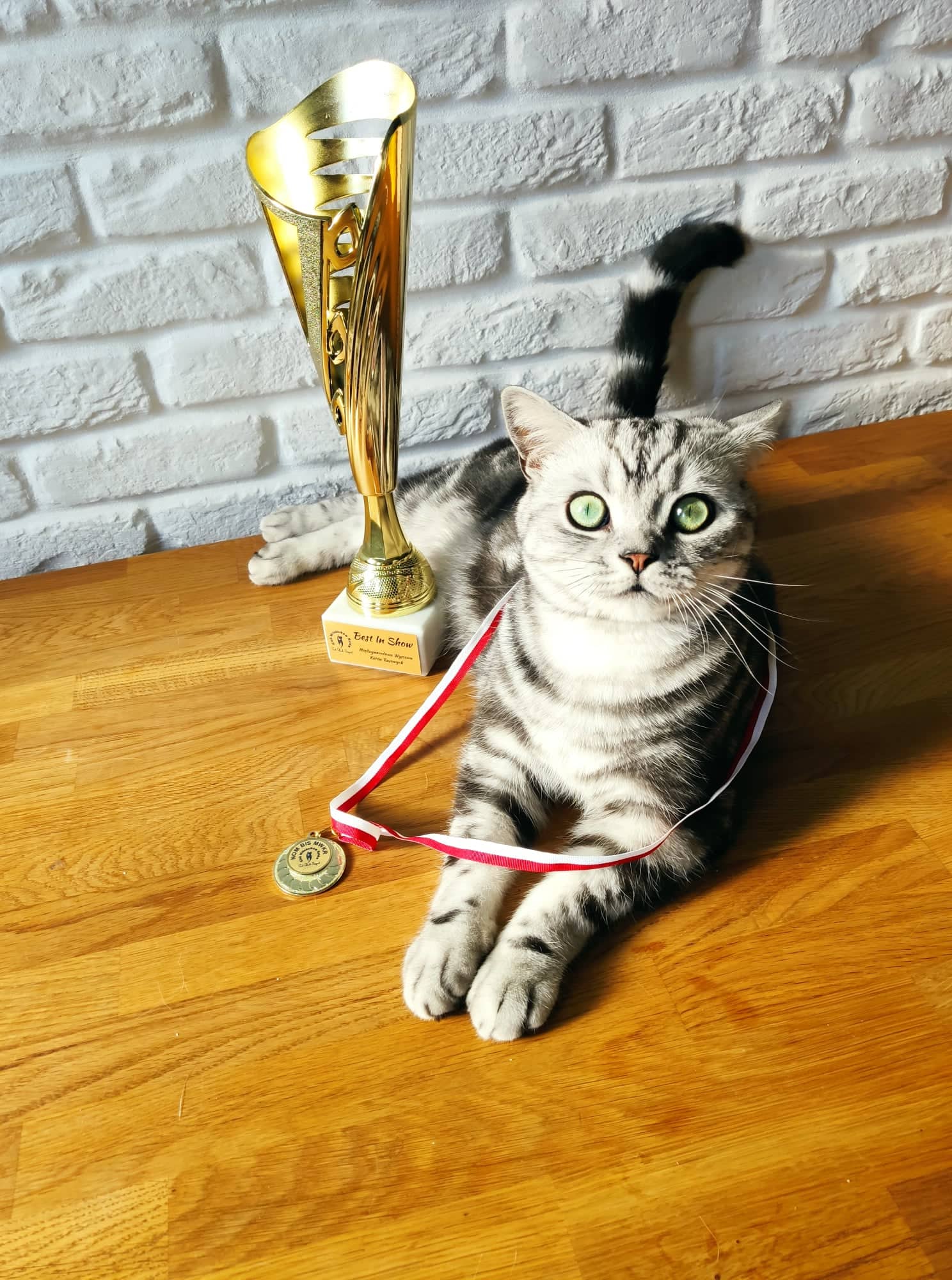 Informacje:tytuł, imię kota: IPUNO SILVER SUN*PL płeć: kocur kolor: BSH ns 22 64 data urodzenia: 2020-09-01 ojciec: SC VALENTINO VAN SONSWIJCK *NL, DVM matka: IC Daisy Silver Sun *PL, JW Opis:W miocie "U" mieliśmy tylko jednego kocurka. Maluszek jest już nauczony korzystania z kociej toalety. Jest już za etapem nauki spożywania stałych pokarmów. Pomimo tego, że jest o kilka dni młodszy od rodzeństwa z miotu "T", to najszybciej załapał jedzenie stałego pożywienia. Jednak mleko mamy jest niezastąpione. Jak się pomyli i druga mama jest bliżej , to też się podłączy. No i mamy też trzecią mamę, która też spokojnie karmi towarzystwo. Mamy dwa sąsiednie mioty i stad też te dwie mamy. Jednak trzecia też przygarnia nie swoje pasiaki - NM SC LOVE ME Silver Sun*PL, JW, DSM, DVM. W drugim miocie mamy jedną koteczkę i pięć kocurków. UNO jest bardzo rezolutny chodzi za człowiekiem jak pies i musi wszystko sprawdzić, czy jest dobrze zrobione, np. czy dobrze są posprzątane kuwety. Jeszcze w hodowli otrzymał przydomek majordomus lub dozorca.