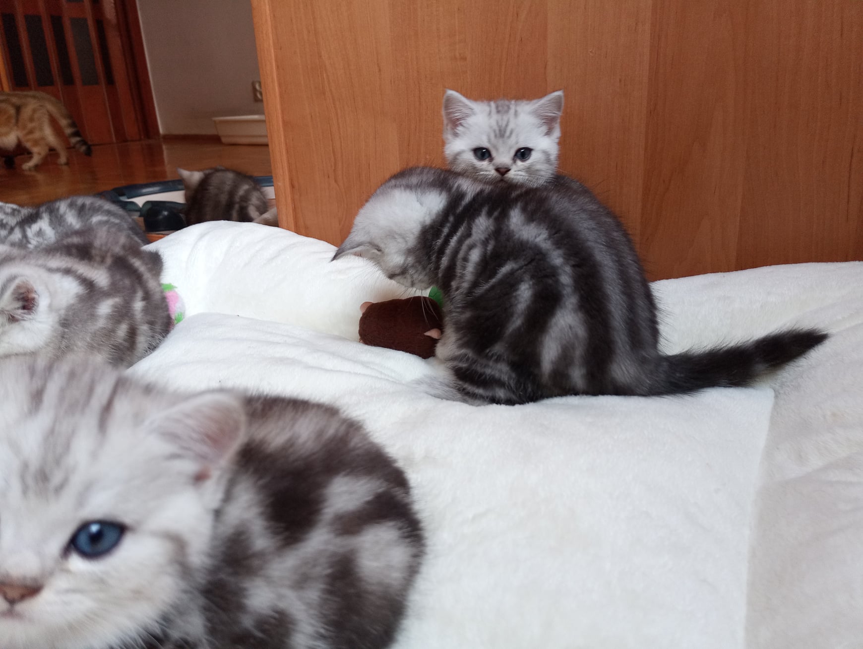 Informacje:tytuł, imię kota: TEO SILVER SUN*PL płeć: kocur kolor: BSH ns 22 64 data urodzenia: 2020-08-29 ojciec: SC JOSCHKA Gryffindors Silver *DE matka: IC ZVEZDOCHKA SWEET BEAST* UA Opis:TEOs' jest chłopcem o wspaniałym usposobieniu i charakterze, jak przystało na rozmruczanego brytolkowego misia. Teos' ma niespożytą energię do kocich harców i zabaw. Kulki i piórka powodują zawsze radość i chęć do zabawy. TEOś mieszka w kochającym domu ze starszym brytolkiem i psem.