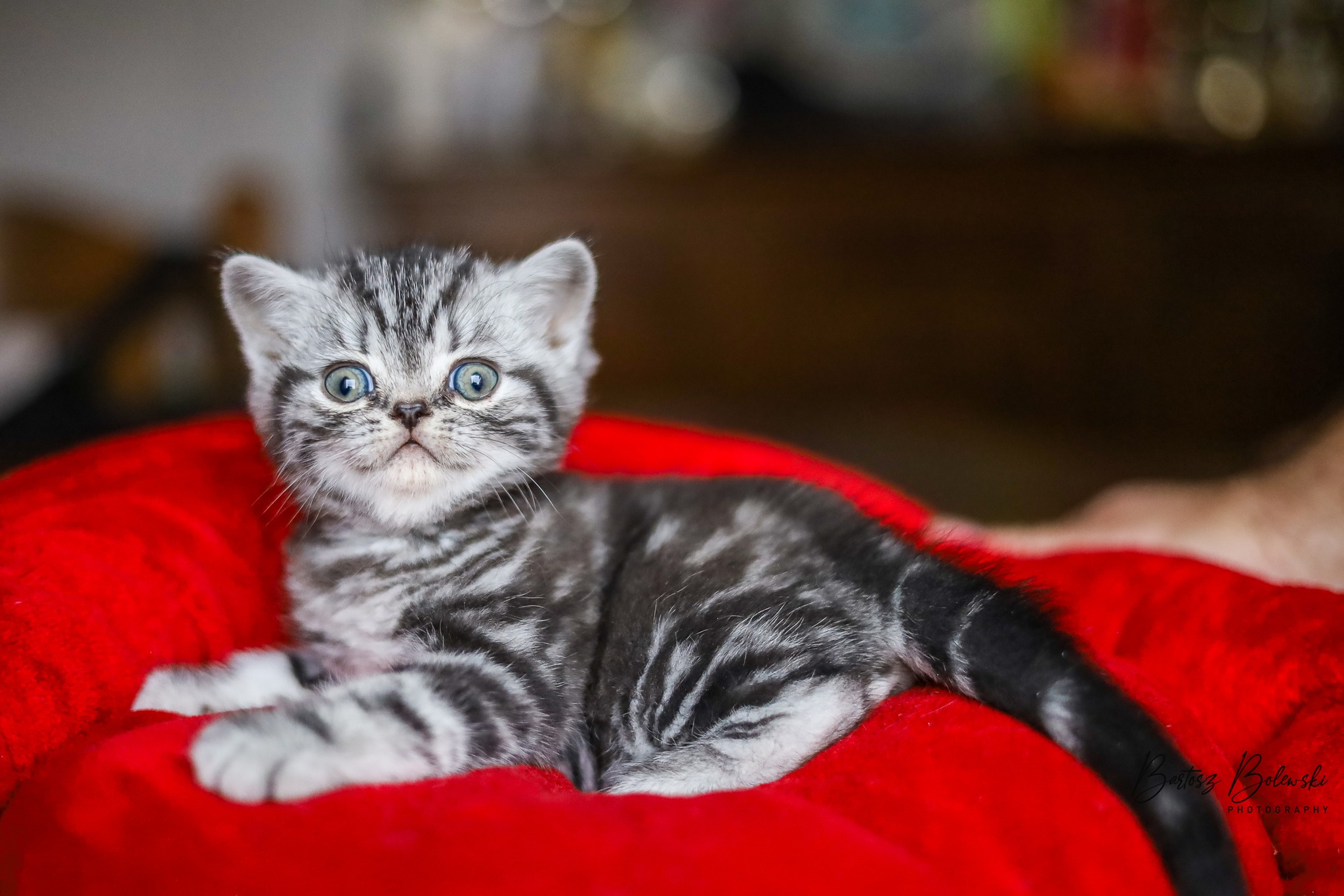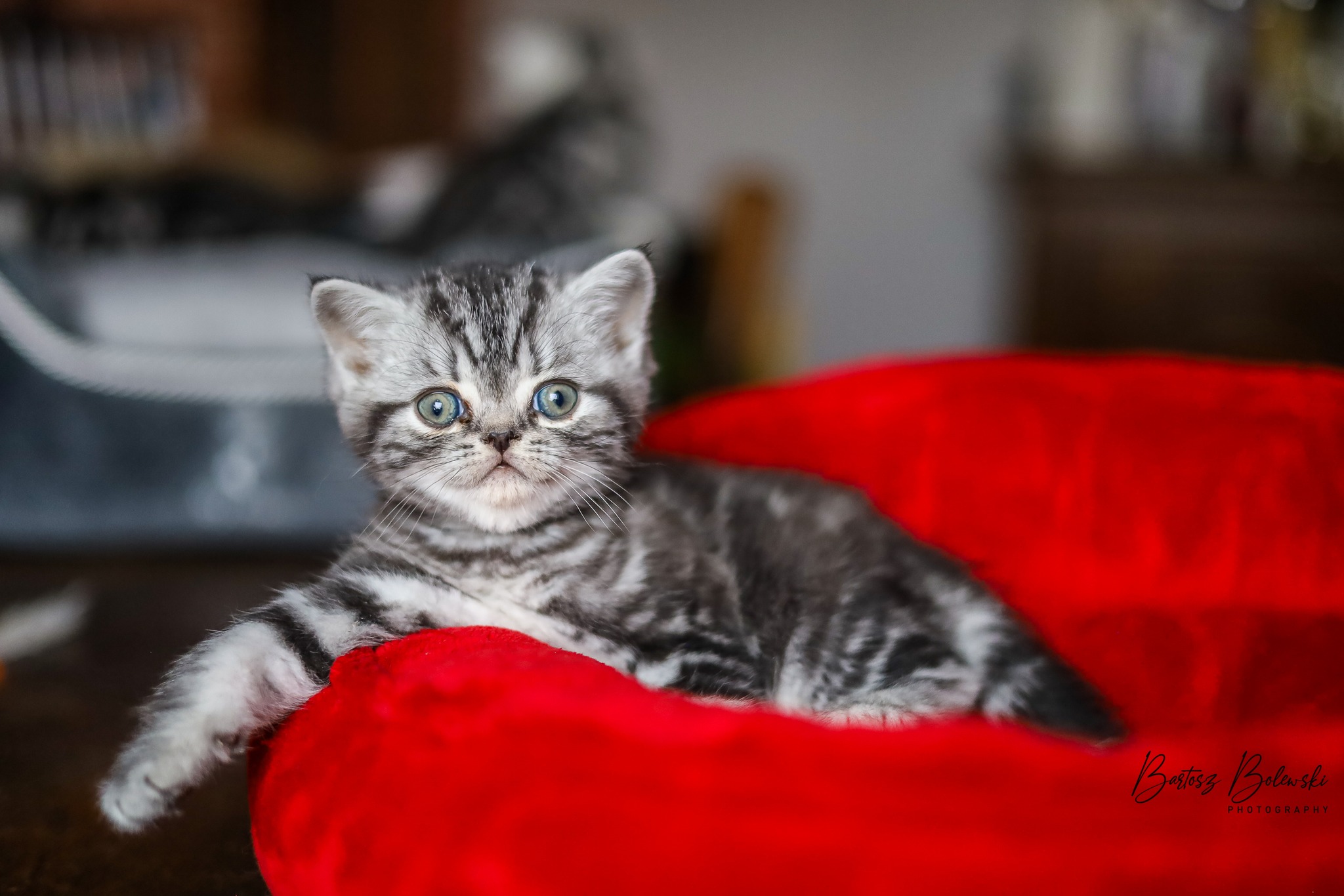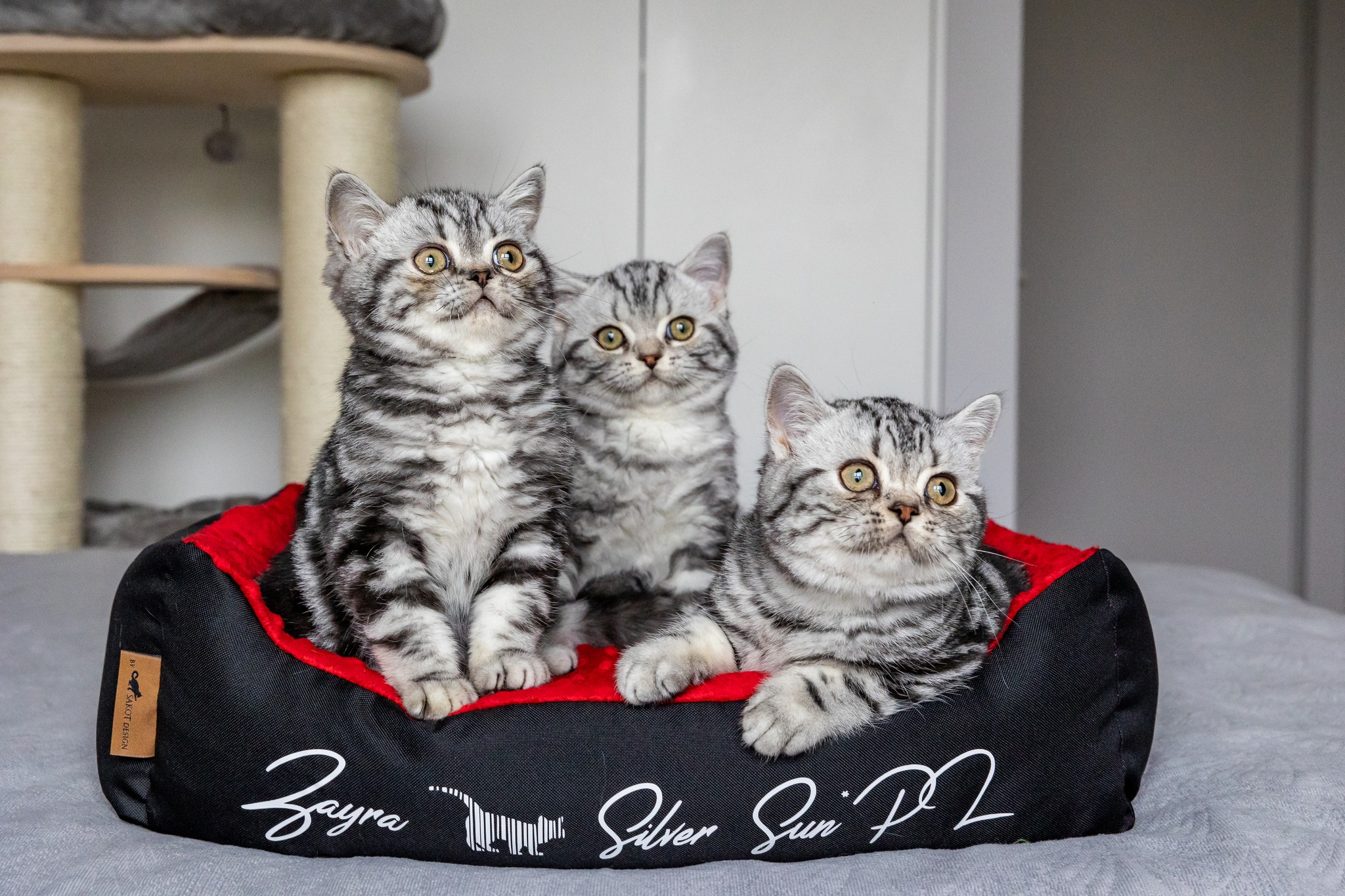 Informacje:tytuł, imię kota: IC ZOYTAN SILVER SUN*PL, JW płeć: kocur kolor: BSH ns 22 64 data urodzenia: 2022-10-10 ojciec: BW SC PRINS CHARMING DELICIA NOSTRAE*NL, JW, DVM, DSM matka: GIC QUEENE Silver Sun *PL Opis:Pragnę podzielić się radosną informacją, że 10 października 2022R. przywitaliśmy miot "Z" w naszej domowej hodowli. Wspaniałymi rodzicami są mama QUEENE urodzona w naszej hodowli, która posiada zaszczytny tytuł (niemalże najwyższy) INTERNATIONAL CHAMPION. Tatą jest nasz rezydent pochodzący z Holandii, który obecnie zdobywa certyfikaty do najwyższego tytułu wystawowego SUPREME CHAMPION. Posiada dwa bardzo prestiżowy tytuł BALTIC WINNER'22-wygrał wystawę w Rydze. Jest pierwszym kotem w Polsce, wśród kotów brytyjskich i drugim kotem w tym kolorze na świecie, który posiada ten zaszczytny tytuł. Posiada również wyjątkowy tytuł Junior Winnera w tym kolorze w Polsce. Jest czwartym Junior Winnerem w Polsce. Z tym, że pozostałe koty z tym zaszczytnym tytułem urodziły się w Hodowli Silver Sun*PL. Mamy kolejnego JW w naszej hodowli 5 Xanti Love. W miocie była jedna dziewczynka i dwóch chłopców. Maluszki są już w pełni odrobaczonę, zachipowane i dwukrotnie zaszczepione na choroby zakaźne .