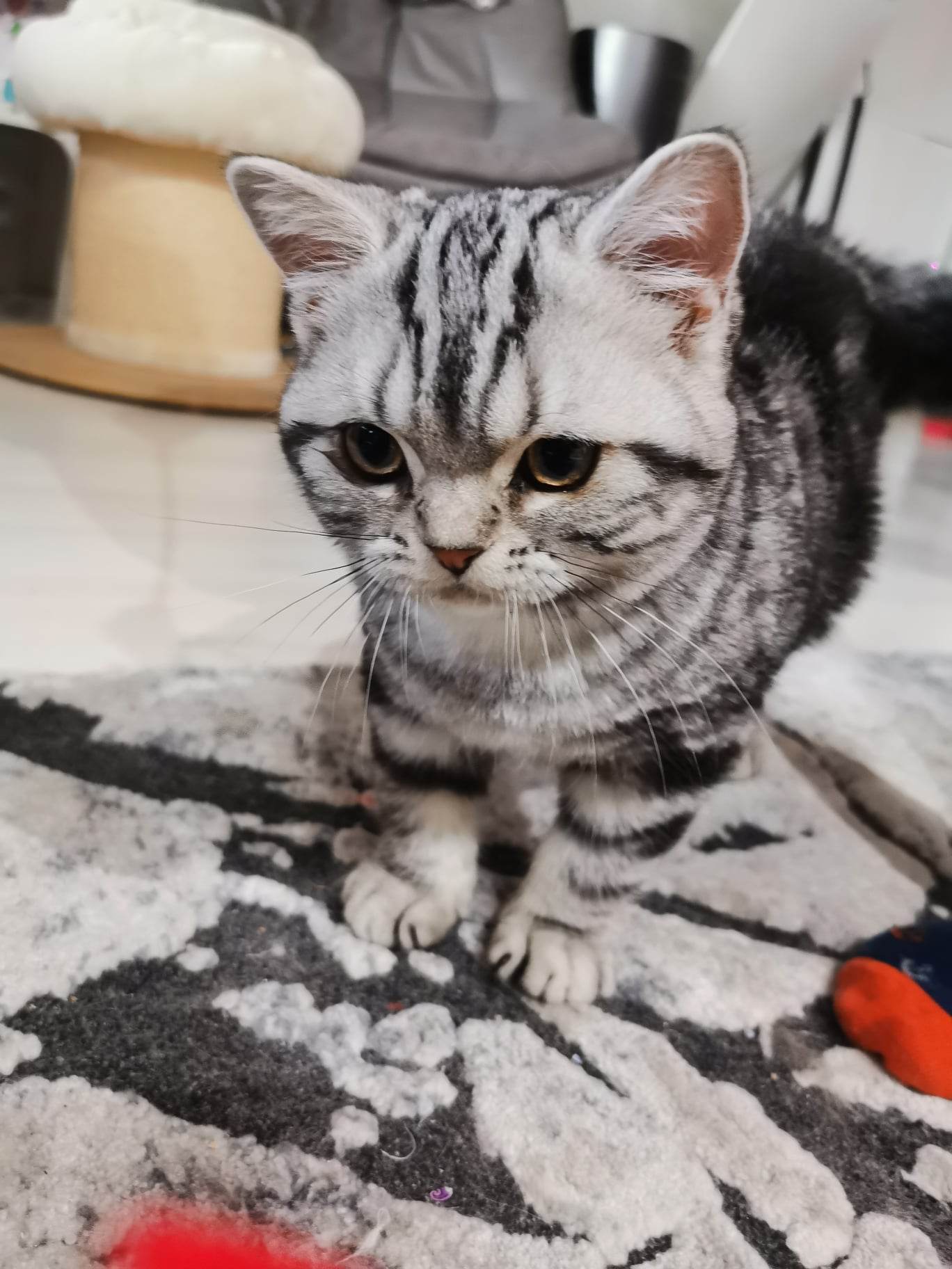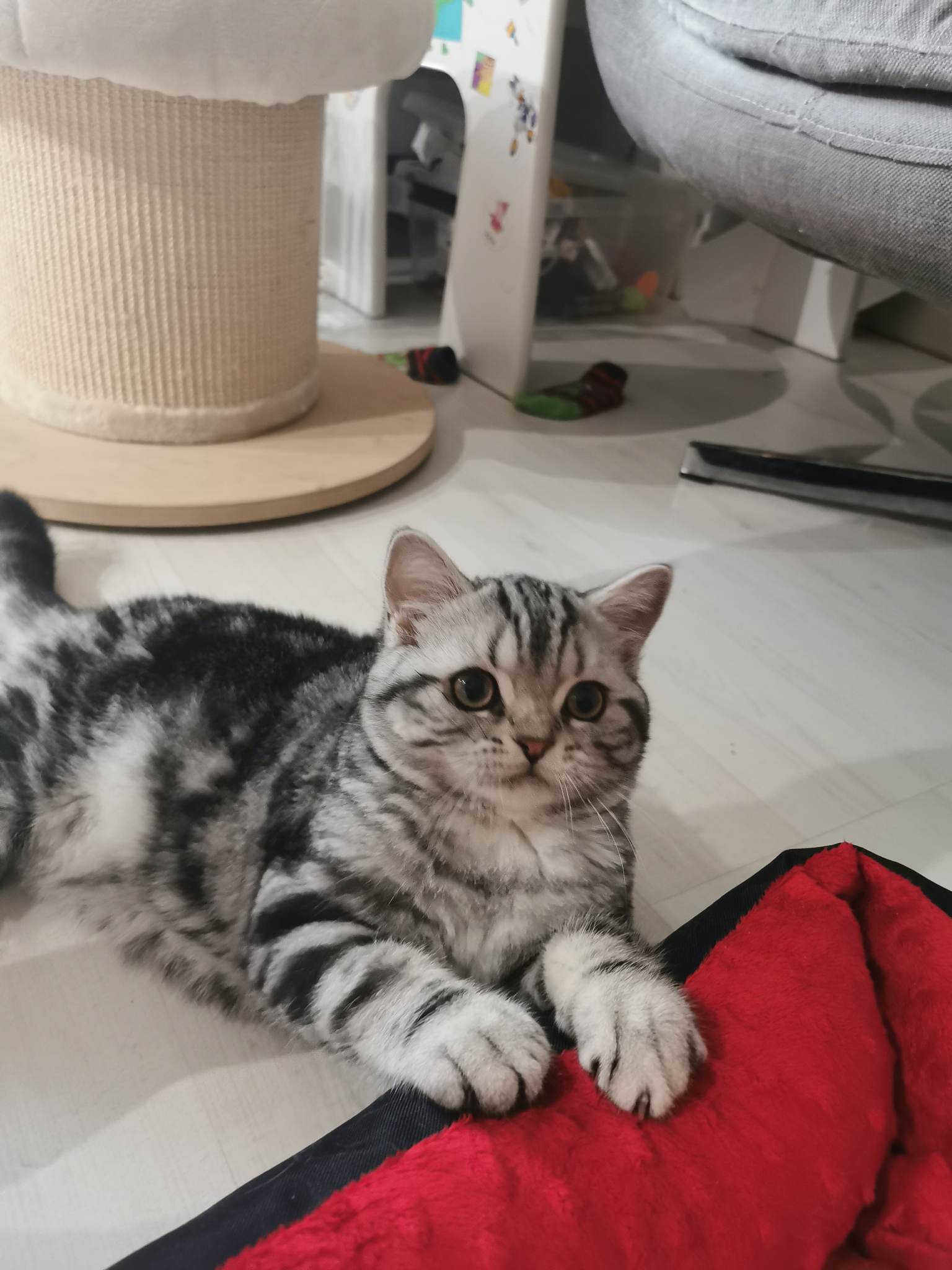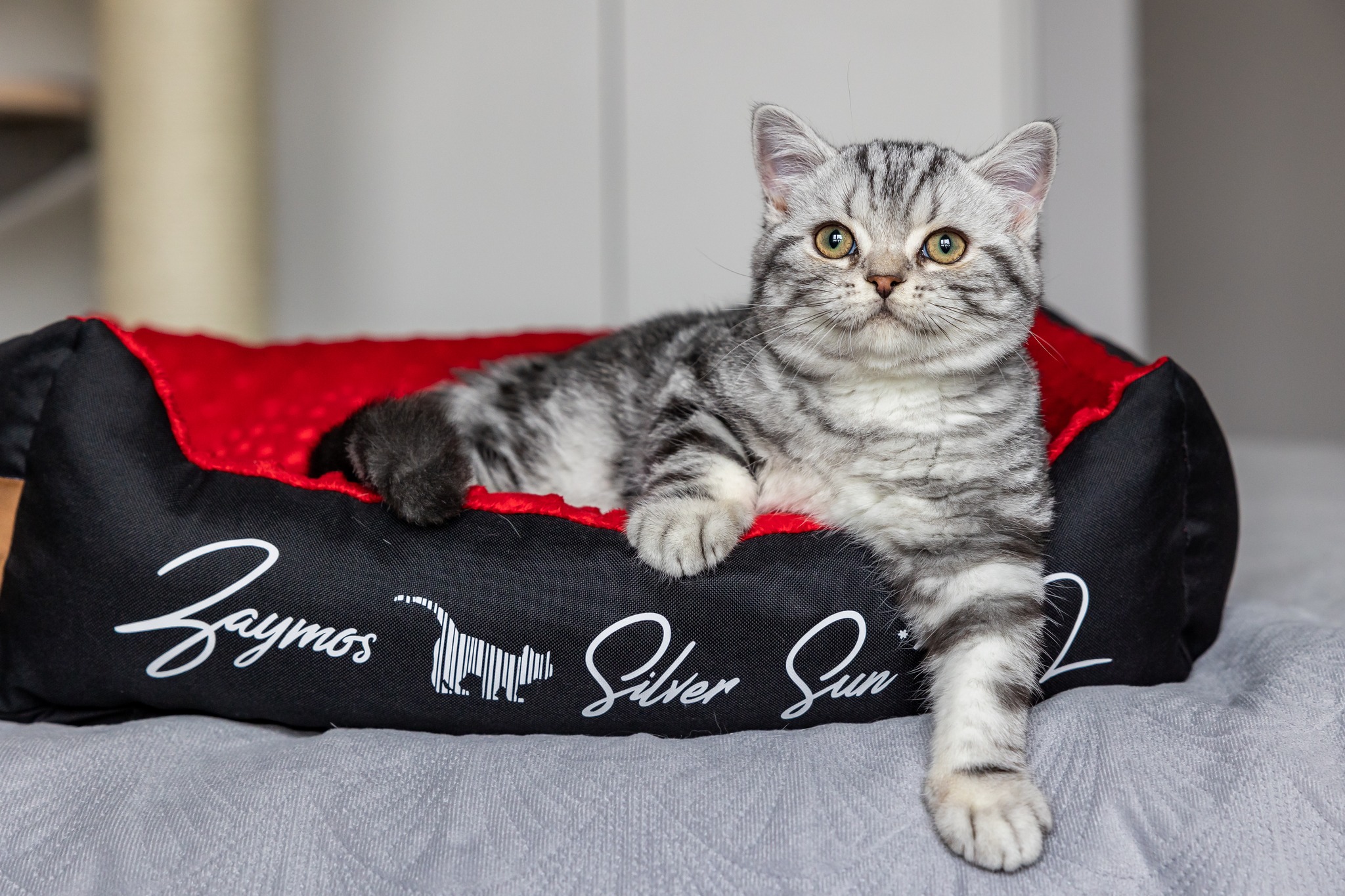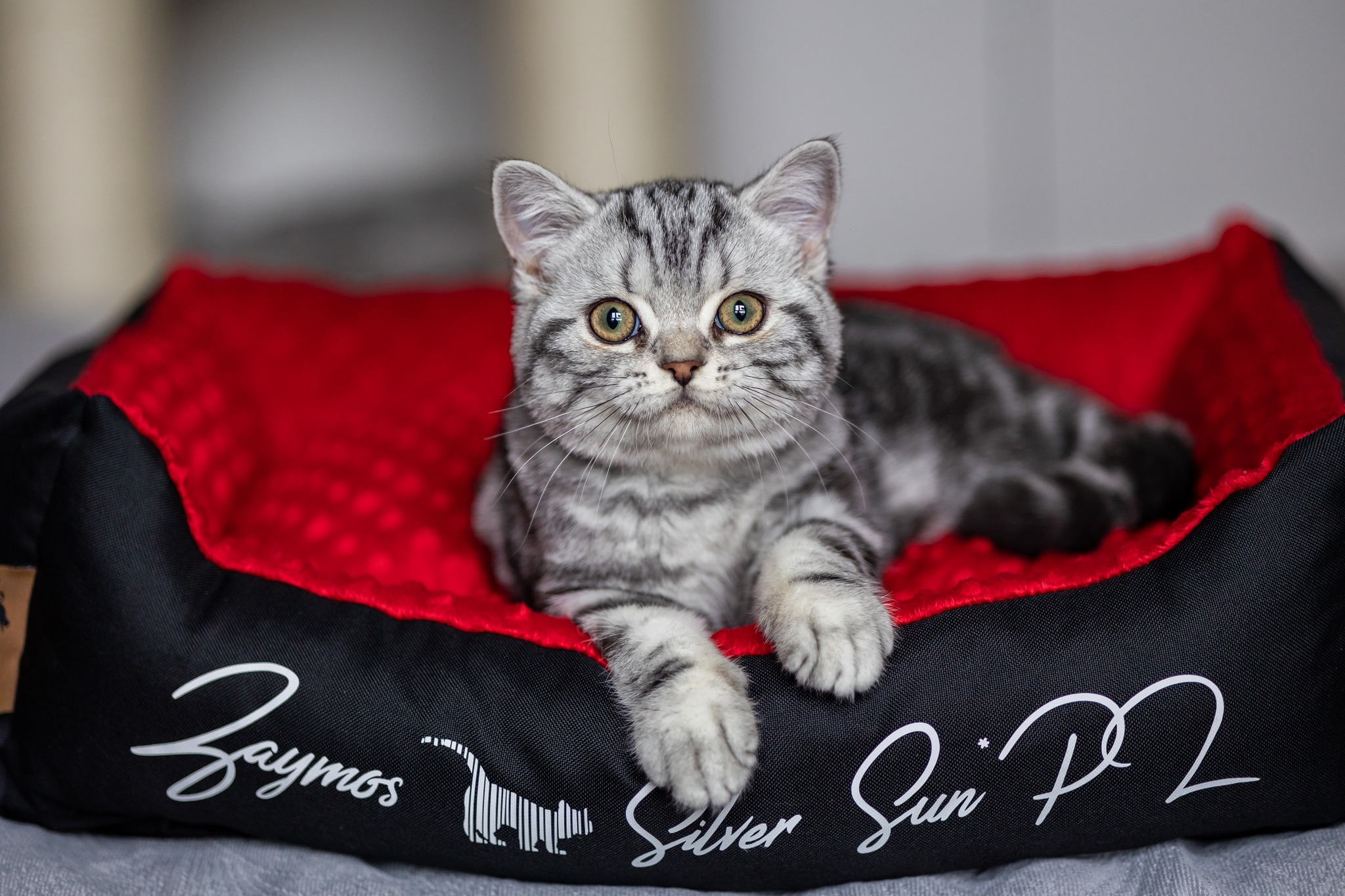 Informacje:tytuł, imię kota: ZAYMOS SILVER SUN* PL płeć: kocur kolor: BSH ns 22 64 data urodzenia: 2022-10-10 ojciec: BW SC PRINS CHARMING DELICIA NOSTRAE*NL, JW, DVM, DSM matka: GIC QUEENE Silver Sun *PL Opis:Zaymos jest jednym z dwóch kocurków w tym miocie. Jest bardzo kontaktowy. Podobnie jaki i rodzeństwo. Usposobienie takiego towarzysza. Jego metodą proszenia o zabawę albo o mięsko jest wywalanie brzucha do głaskania. Taki koci sposób, który bardzo dobrze działa.