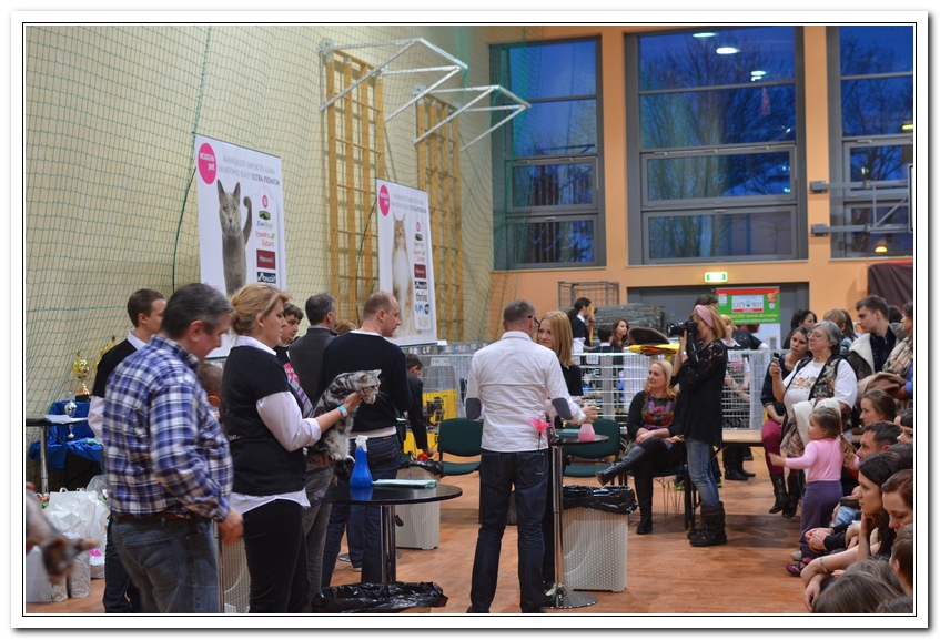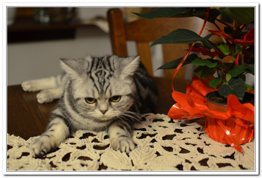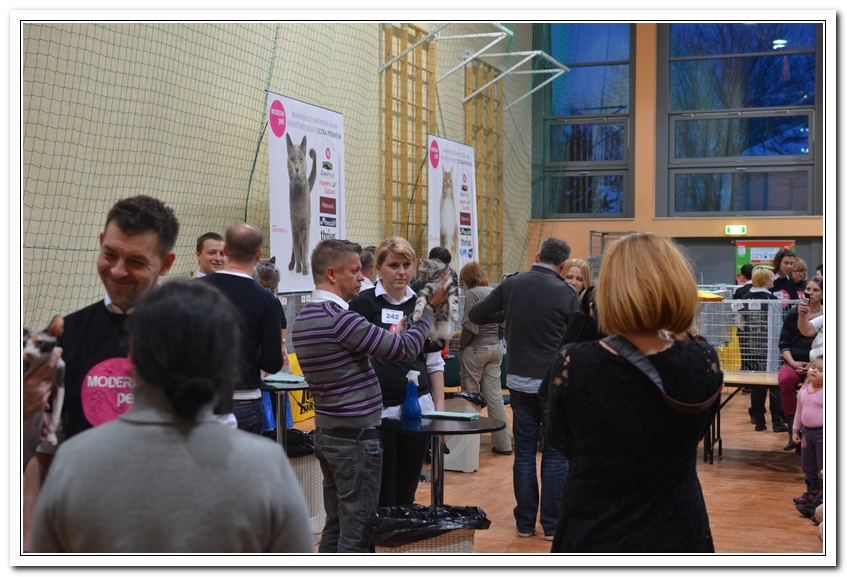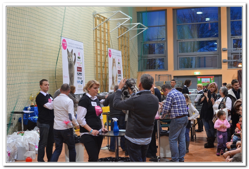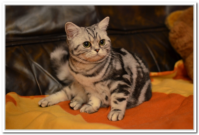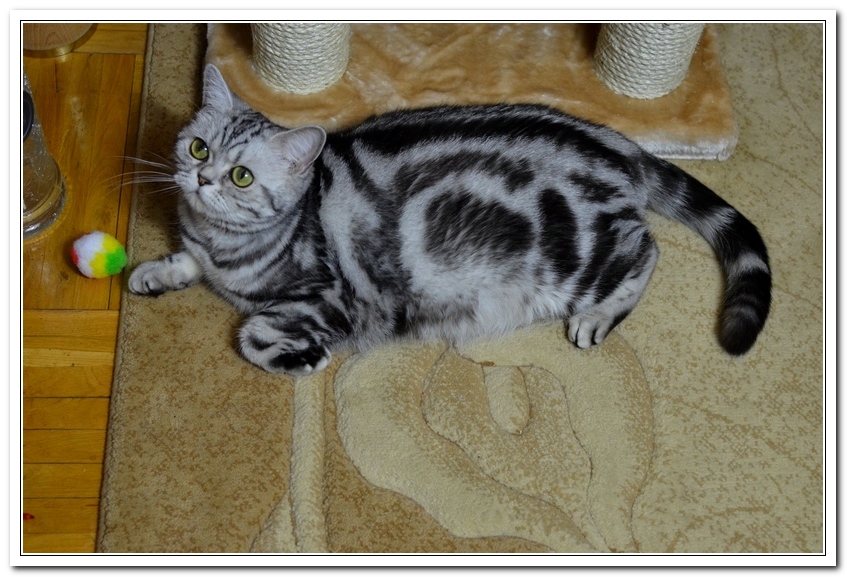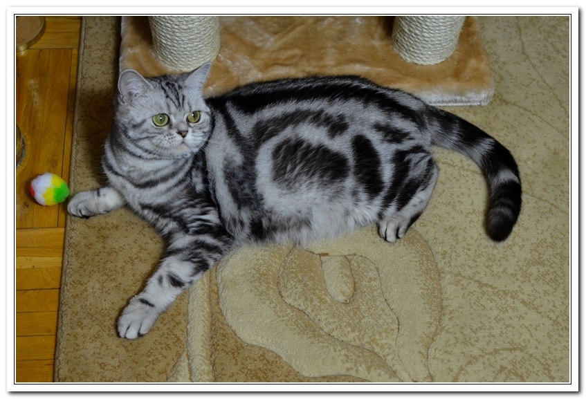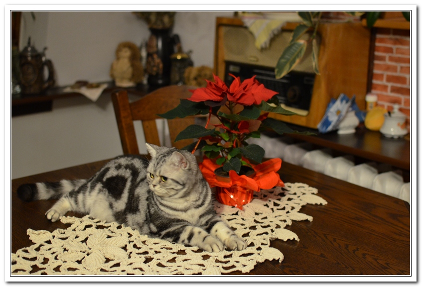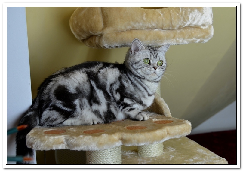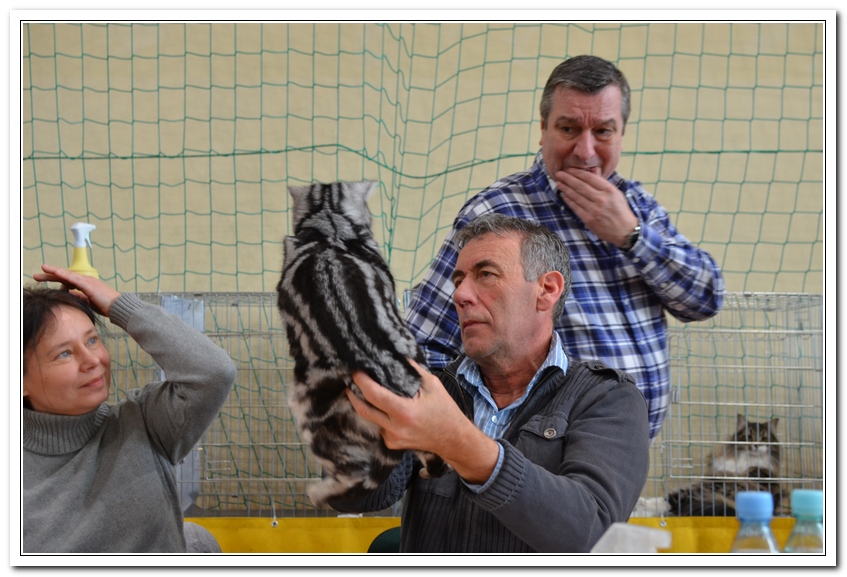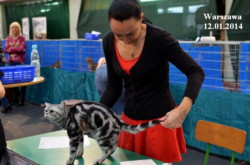 Informacje:tytuł, imię kota: SCAmy Silver Sun *PL, płeć: kotka kolor: BSH ns 22 64 data urodzenia: 2012-02-17 ojciec: CH Gordon Manikeob, JW *DE matka: IC Xistis Herbu Kadar *PL Opis:Z perspektywy czasu mogę powiedzieć, że jest „klonem” swojej mamy IC Xistis Herbu Kader*PL . Nie tylko chodzi o jej wygląd ale również o charakter. Kiedy przyszła na świat od pierwszych chwil zawładnęła moim sercem. Mała słodka pszczółka, bo tak była nazywana. Uwielbia robić baranki, nadstawiać czółko , do całowania – przecież trzeba przywitać się po powrocie do domu i pożegnać przed snem. Jeśli chodzi o sen, to tutaj jest cały rytuał obowiązkowych czynności, które trzeba wykonać – zanim zaśniemy. Nawet w tej dziedzinie uderzające podobieństwo do mamusi. Amy doskonale prezentuje się na wystawach. Zawsze sędziowie zwracają uwagę na jej duże okrągłe oczy o cudownym szmaragdowym kolorze. Nigdy nie otrzymała oceny innej niż Ex1. Raz otrzymała ocenę Ex1 bez certyfikatu w Żylinie na Słowacji – oceniała ją Pani Laura Burani-Ferrari z Woch. Argumentacja była taka: „Nie ma żadnych zarzutów do niej. Nigdy nie dałam certyfikatu 14-miesięcznemu kociakowi do Grand Interanional Champion i nie dam. To jest za wysoki tytuł na tak młodego kociaka”. Kilka miesięcy odczekaliśmy i w kolejne 4 miesiące Amy otrzymała tytuł Granda. Następnie były kolejne wystawowe sukcesy już jako pretendentka do tytułu Supreme Champion. Swój początek sukcesów wystawowych rozpoczęła w Kownie. Następnie były wystawy w Białymstoku i w Olomouc w Czechach, Tam również otrzymała nominację do BIS. Amy w ten weekend 8-9 października 2016 otrzymała dwa ostatnie certyfikaty CACS z wystawy w Białymstoku uprawniające ją do najwyższego tytułu Supreme Champion. W rodowodzie Amy posiada w przeważającej części linie De Broeckloni, Manikeob oraz kilka innych.