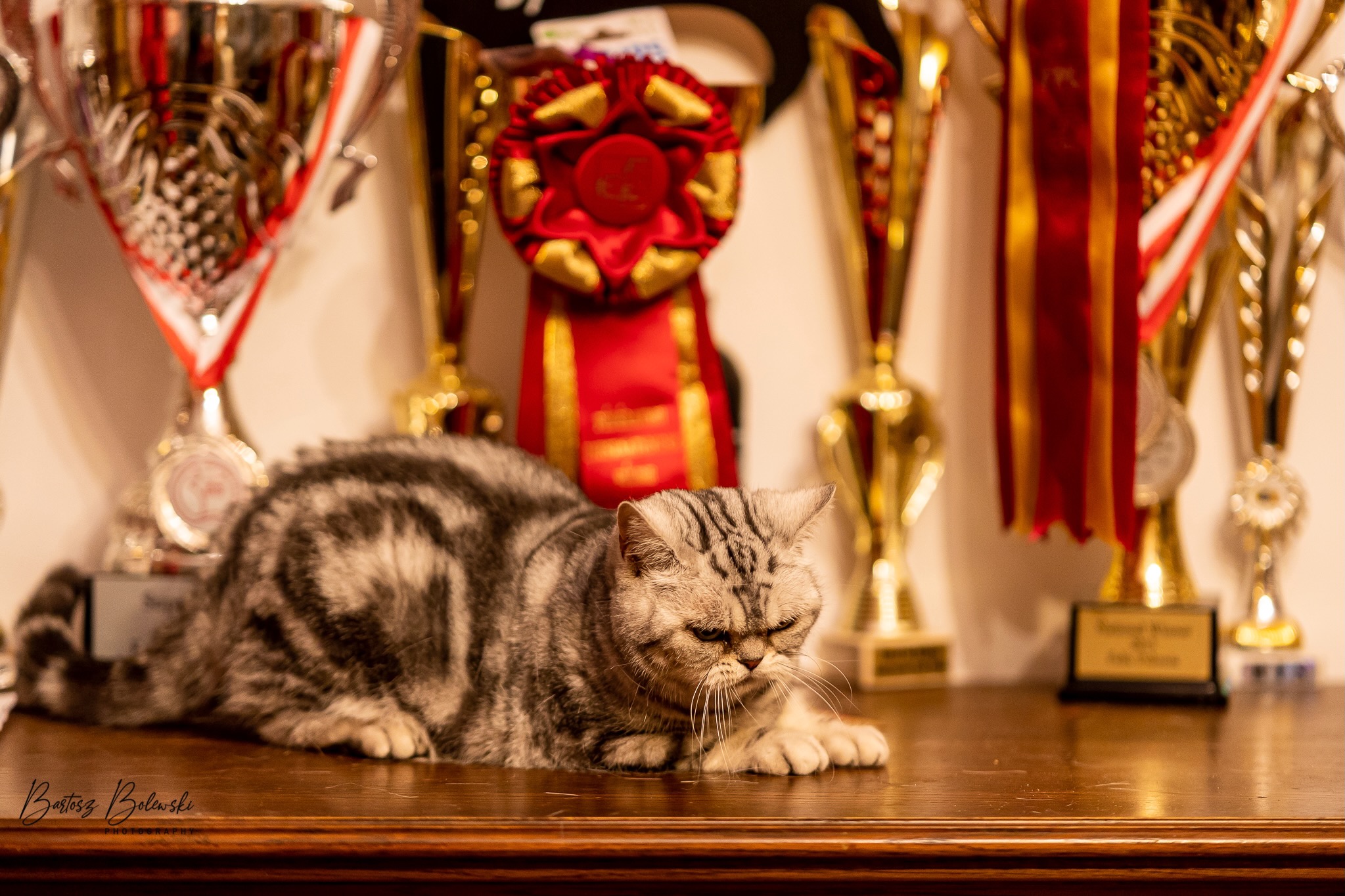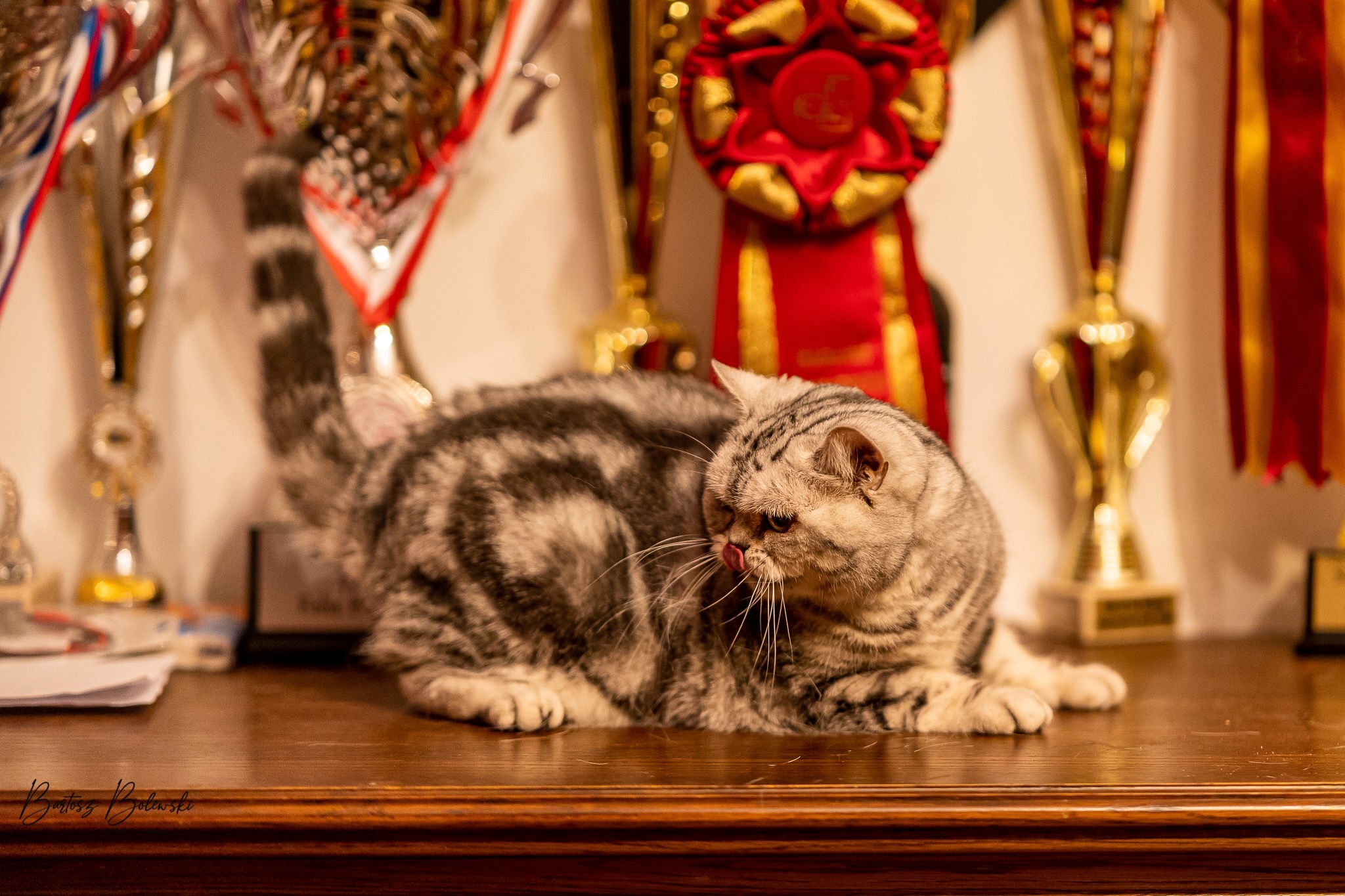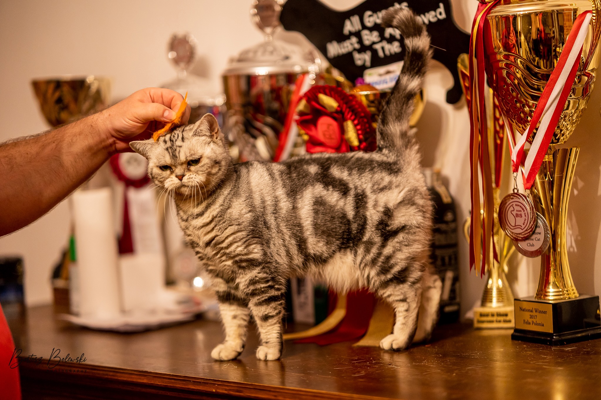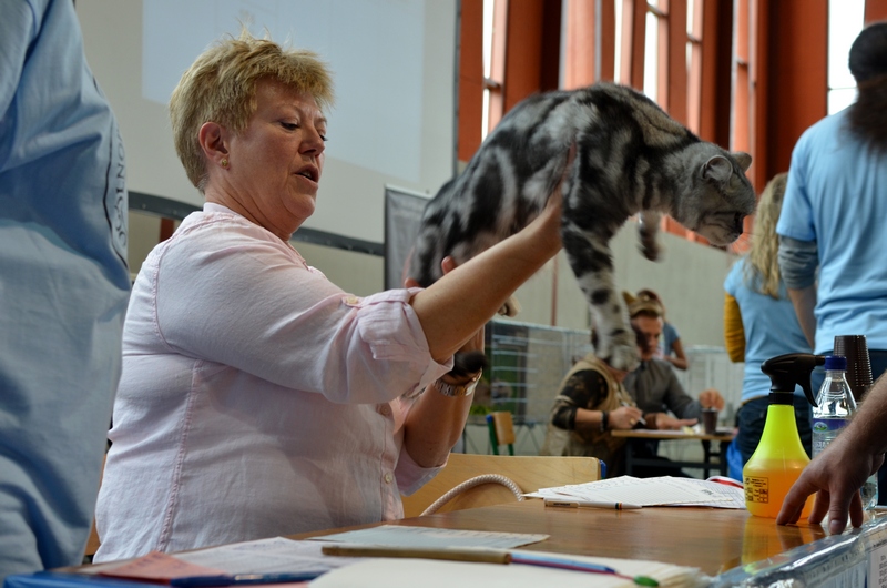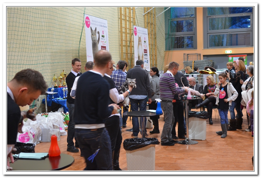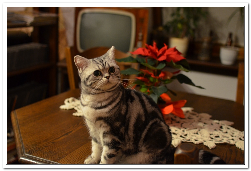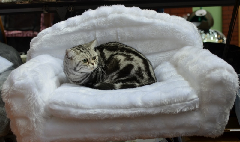 Informacje:tytuł, imię kota: SCAmy Silver Sun *PL, płeć: kotka kolor: BSH ns 22 64 data urodzenia: 2012-02-17 ojciec: CH Gordon Manikeob, JW *DE matka: IC Xistis Herbu Kadar *PL Opis:Z perspektywy czasu mogę powiedzieć, że jest „klonem” swojej mamy IC Xistis Herbu Kader*PL . Nie tylko chodzi o jej wygląd ale również o charakter. Kiedy przyszła na świat od pierwszych chwil zawładnęła moim sercem. Mała słodka pszczółka, bo tak była nazywana. Uwielbia robić baranki, nadstawiać czółko , do całowania – przecież trzeba przywitać się po powrocie do domu i pożegnać przed snem. Jeśli chodzi o sen, to tutaj jest cały rytuał obowiązkowych czynności, które trzeba wykonać – zanim zaśniemy. Nawet w tej dziedzinie uderzające podobieństwo do mamusi. Amy doskonale prezentuje się na wystawach. Zawsze sędziowie zwracają uwagę na jej duże okrągłe oczy o cudownym szmaragdowym kolorze. Nigdy nie otrzymała oceny innej niż Ex1. Raz otrzymała ocenę Ex1 bez certyfikatu w Żylinie na Słowacji – oceniała ją Pani Laura Burani-Ferrari z Woch. Argumentacja była taka: „Nie ma żadnych zarzutów do niej. Nigdy nie dałam certyfikatu 14-miesięcznemu kociakowi do Grand Interanional Champion i nie dam. To jest za wysoki tytuł na tak młodego kociaka”. Kilka miesięcy odczekaliśmy i w kolejne 4 miesiące Amy otrzymała tytuł Granda. Następnie były kolejne wystawowe sukcesy już jako pretendentka do tytułu Supreme Champion. Swój początek sukcesów wystawowych rozpoczęła w Kownie. Następnie były wystawy w Białymstoku i w Olomouc w Czechach, Tam również otrzymała nominację do BIS. Amy w ten weekend 8-9 października 2016 otrzymała dwa ostatnie certyfikaty CACS z wystawy w Białymstoku uprawniające ją do najwyższego tytułu Supreme Champion. W rodowodzie Amy posiada w przeważającej części linie De Broeckloni, Manikeob oraz kilka innych.