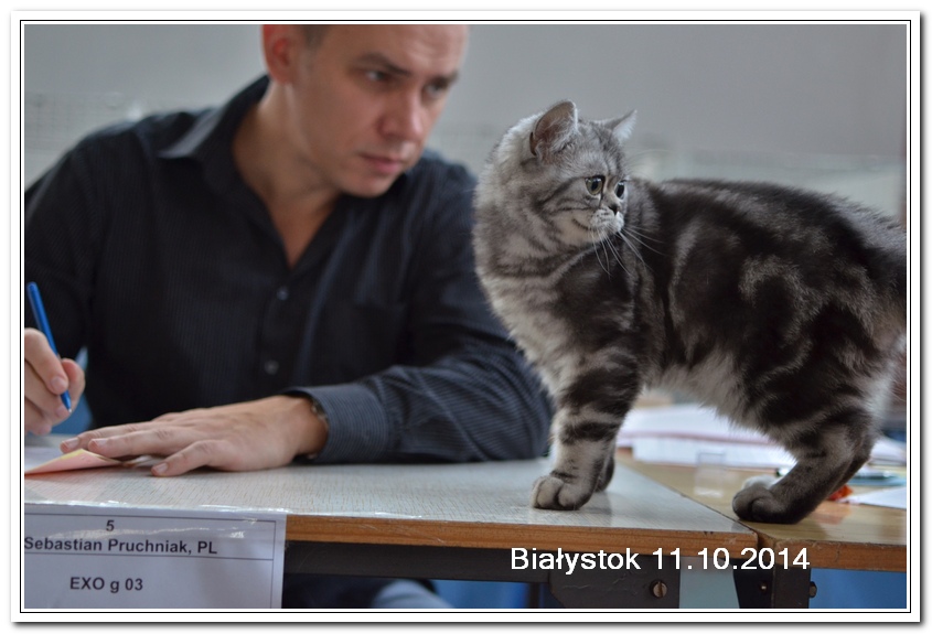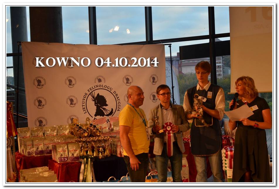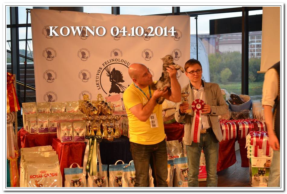 Informacje dodatkowe: Breeding and Show Wspaniały start Daisy na wystawie w Kownie. Pierwszego dnia Daisy uzyskała ocenę Ex1, nominację do BIS i w panelu zdobyła tytuł BIS - najlepszego kociaka ze wszystkich ras w kategorii III kotów krótkowłosych. Wyśmienite osiągnięcie! Jesteśmy bardzo szczęśliwi !!! Drugiego dnia uzyskała Ex1 i BIV Total - najlepszej w kolorze. W nominacji przegrała z nowym Junior Winnerem Chester Fedra Rex *PL JW. Wielkie gratulacje dla zwycięzcy i dla Izy !. Nie był to jedyny BIS w karierze pięknej Daisy. Ten sukces powtórzyła na listopadowej wystawie w Kownie, zdobywając drugiego BIS-a. Szczęśliwy również okazał się nasz wyjazd do Olomouc w Czechach.