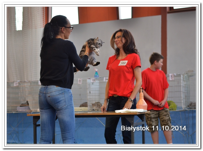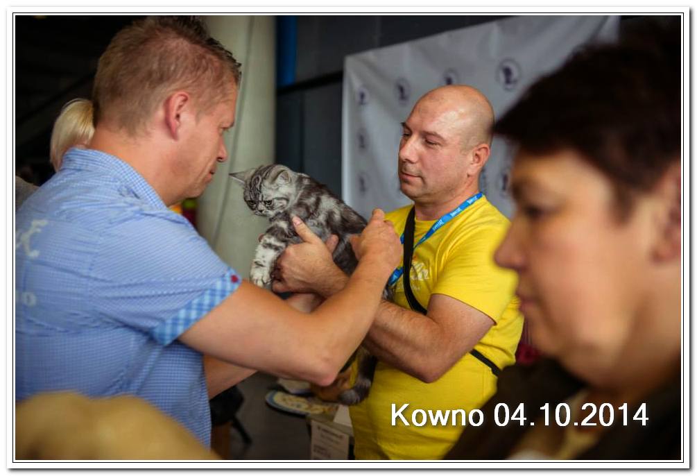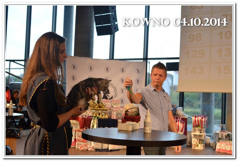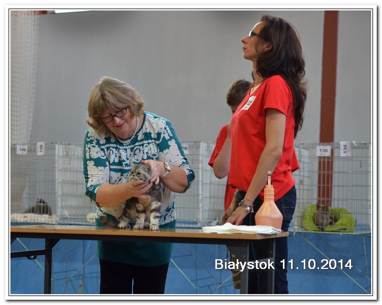 Ostatnia wystawa w 2014 roku również była dla nas szczęśliwa. Daisy otrzymała dwa razy Ex1 i w obydwa dni była nominowana do BIS. W sobotę nominację uzyskała od sędziny z Dannii Pani Pia Nyrup. A w niedzielę ujęła swoim wdziękiem Panią Annę Wilczek z Polski, która reagowała promiennym uśmiechem widząc Daisy. W głosowaniu w niedzielę moja Gwiazda otrzymała czwartego BIS-a jednogłośnie z wpisanym numerkiem kota w wielkie serce. Wszyscy sędziowie pokazali tabliczki z taką notą dla niej. Było to bardzo miłe dla Daisy i dla mnie. Serdecznie dziękujemy za tak miłe doznania i emocję.