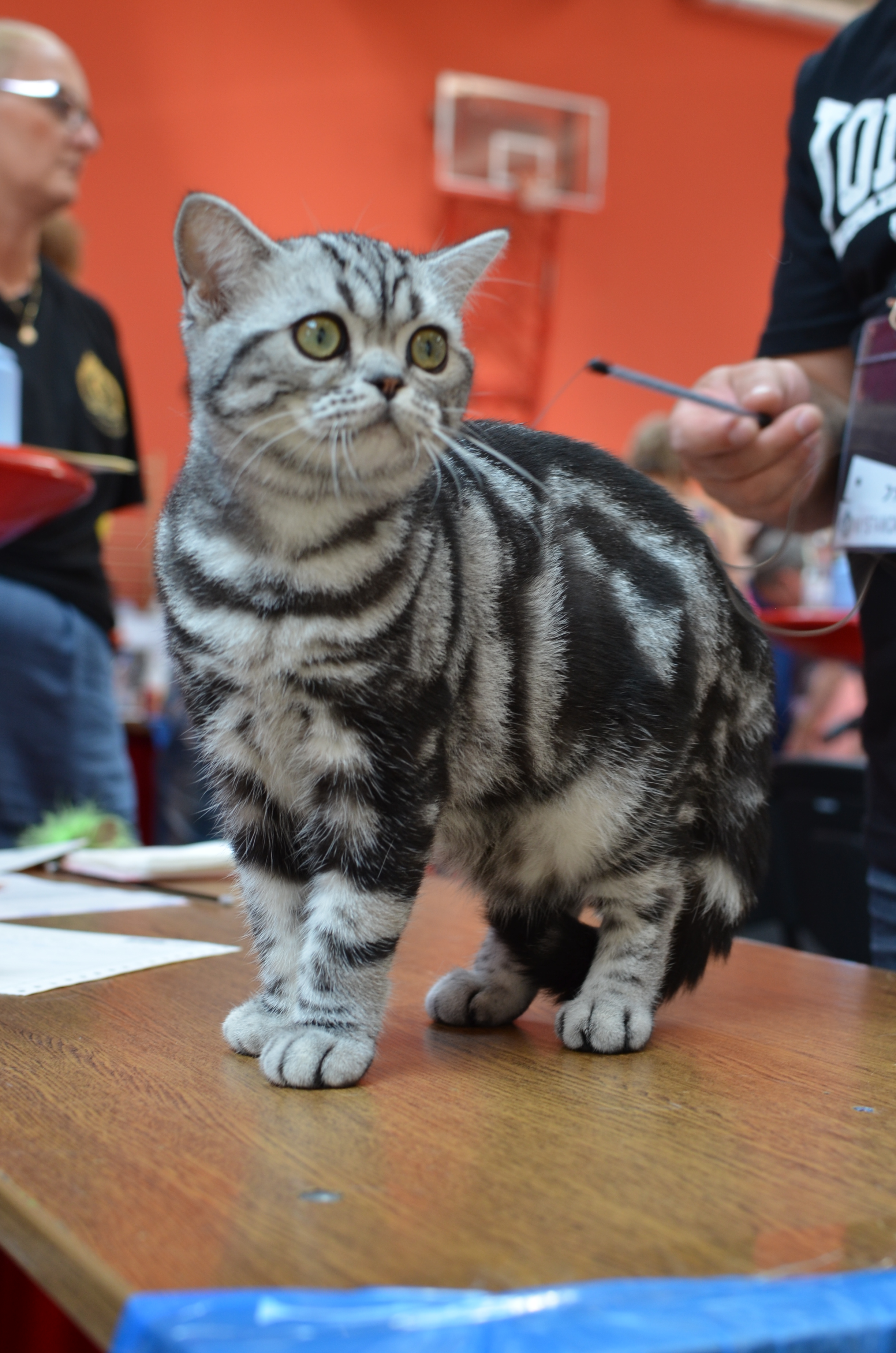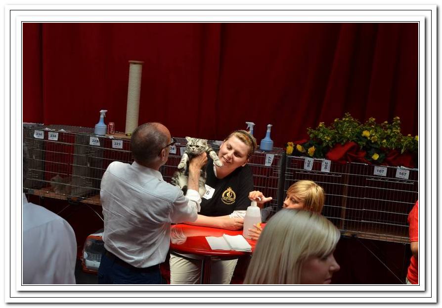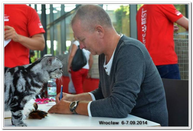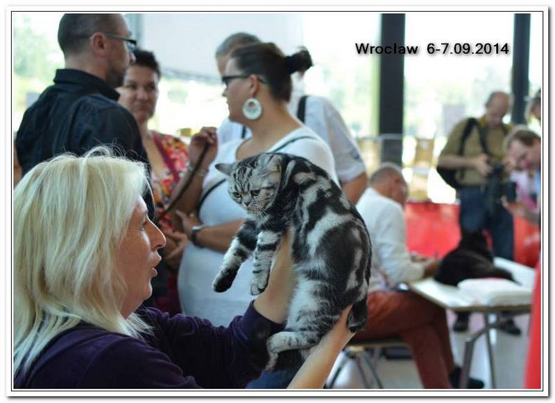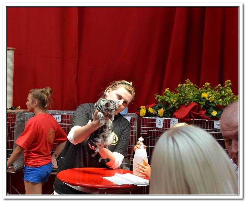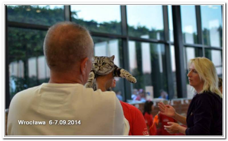 Informacje:tytuł, imię kota: GICYOU TOO Vale of Proud's *DE płeć: kotka kolor: BSH ns 22 64 data urodzenia: 2014-02-24 ojciec: Kalypso Vale of Proud's matka: WE LOVE U Tabby Dream Opis:You Too kilka razy była prezentowana w kategorii 12 i 11 w Kittenach i Juniorach na 6 wystawa otrzymała cztery razy Nom do BIS i raz BIV ( najlepszej w kolorze). Jest bardzo obiecującą koteczką! Pierwsza wystawa You Too w klasie otwartej była w Warszawie 17 stycznia 2015r. Swój debiut jako dorosły kot miała u sędziego Ireneusza Pruchniaka - otrzymała Ex1 i pierwszy certyfikat CAC do Championa. Drugiego dnia swoim wprawnym okiem oglądał i oceniał ją sędzia Sebastian Pruchniak. Otrzymała ocenę Ex1, CAC, kolejny certyfikat do wystawowego, a także BIV (najlepszej w kolorze). Tydzień później wybraliśmy się do Wiednia, była to moja pierwsza wizyta wystawowa w Austrii. You Too spisała się doskonale! Pierwszy raz widziałem tyle kotów silver tabby na jednej wystawie - było ich 15 sztuk. Tylko w klasie otwartej było sześć kotów, w tym 5 kotek. W sobotę oceniał nas sędzia z Holandii - Ad de Bruijn, który jest również hodowcą tego koloru kotów brytyjskich z 35 letnim stażem. YOU TOO została wybrana kotką numer jeden wygrywając z koteczką, która ma zaszczytny tytuł Junior Winnera. Otrzymała ostatni certyfikat uprawniający ją do tytułu Championa w dniu ukończenia 11 miesięcy. W niedzielę oceniał nasz szef FIFe Eric Reijers, który był nią zachwycony. Stwierdził, że jest bardzo obiecującą kotką. Jesteśmy bardzo zadowolenie z osiągnięć YOU TOO !