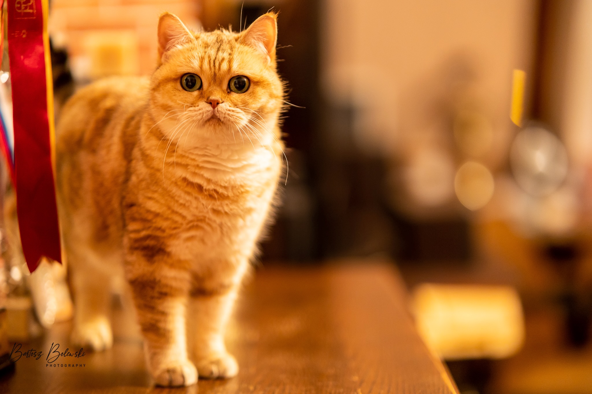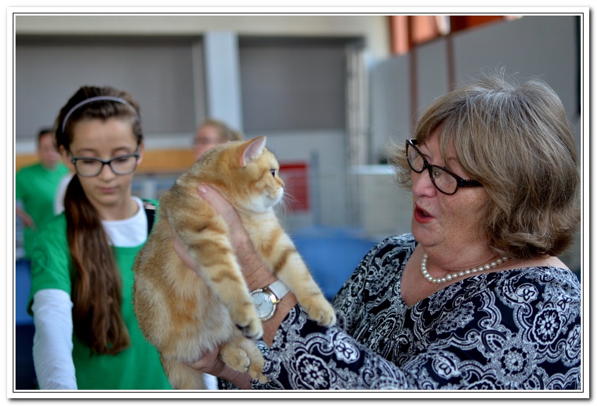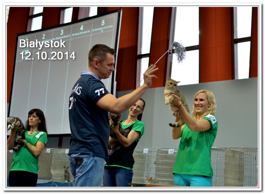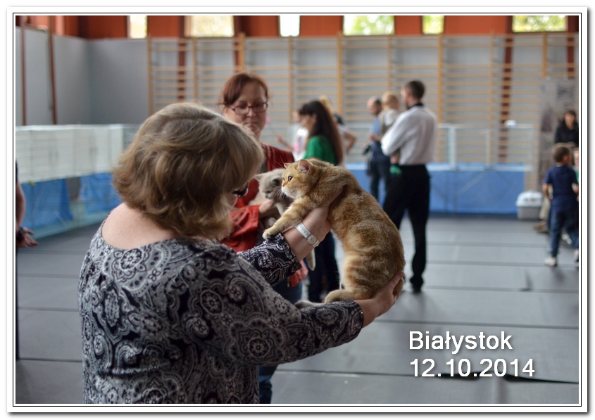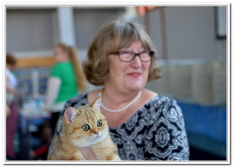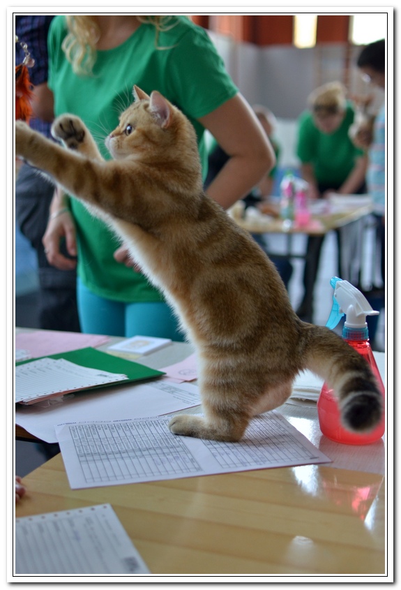 Informacje:tytuł, imię kota: ICZVEZDOCHKA SWEET BEAST* UA płeć: kotka kolor: BSH ny 22 64 data urodzenia: 2014-05-08 ojciec: IC GOLDEN NIKODEMOS NO DEMETRA* LV matka: DIAMOND BREESE DOLORES Opis:Gwiazdka przyjechała do Lublina tuż przed godziną 7 rano, pewnego wrześniowego poranka. Miała wtedy skończone cztery miesiące. Jest pierwszym kotem w Hodowli Silver Sun o umaszczeniu złota klasycznie pręgowana - inaczej mówiąc złota tabby (BSH ny 22 64) z zielonymi oczami. Gwiazdka otrzymała przydomek w mojej hodowli - Rudzielec lub Rudi. Przyznam, że zawsze zastanawiałem się czy charakter kota jest związany z kolorem futra. Z moich późniejszych obserwacji wynika, że jest. A mogę to stwierdzić na podstawie Rudej i później dwóch dziewczyn z miotu "F" FANTASY i FORTUNY. Ruda swoim usposobieniem i charakterem przypomina trochę "szmacianą lalkę". Jest bardzo ugodowym kotem, z niesamowitym charakterem do przytulania i do zabawy. Piłeczki, sznurki a zwłaszcza piórka wprawiają Rudzielca o podwójne a nawet potrójne doładowanie baterii "Powera" do zabawy. Podczas debiutu wystawowego w Białymstoku, sędzina i wieloletni hodowca Pani Marta Ziemiańska zakochała się w tym słodkim Rudzielcu. Prawie cała wystawę Ruda spędziła na rękach i kolanach u Pani Marty, poddając się pocałunkom, mizianiu i pieszczotom. Wyglądała na szczególnie zadowoloną. Gwiazdka doskonale radzi sobie na wystawach. Swój debiut miała na wystawie w Białymstoku 2014 roku. Pani Sędzina Hanne Sofie Sneum z Danii, była zachwycona typem, urodą i temperamentem Gwiazdki. Na innej wystawie sędzia Henry Hornell zapytał mnie dlaczego ja jej nie próbuję zrobić tytuł Junior Winner. Żałuję trochę, że ona nigdy nie będzie miała prestiżowego tytułu DVM. W Polsce nigdy nie spotkałem innego kota w tym kolorze, nie wspomnę już o trzech, żeby otrzymać tytuł BIV.