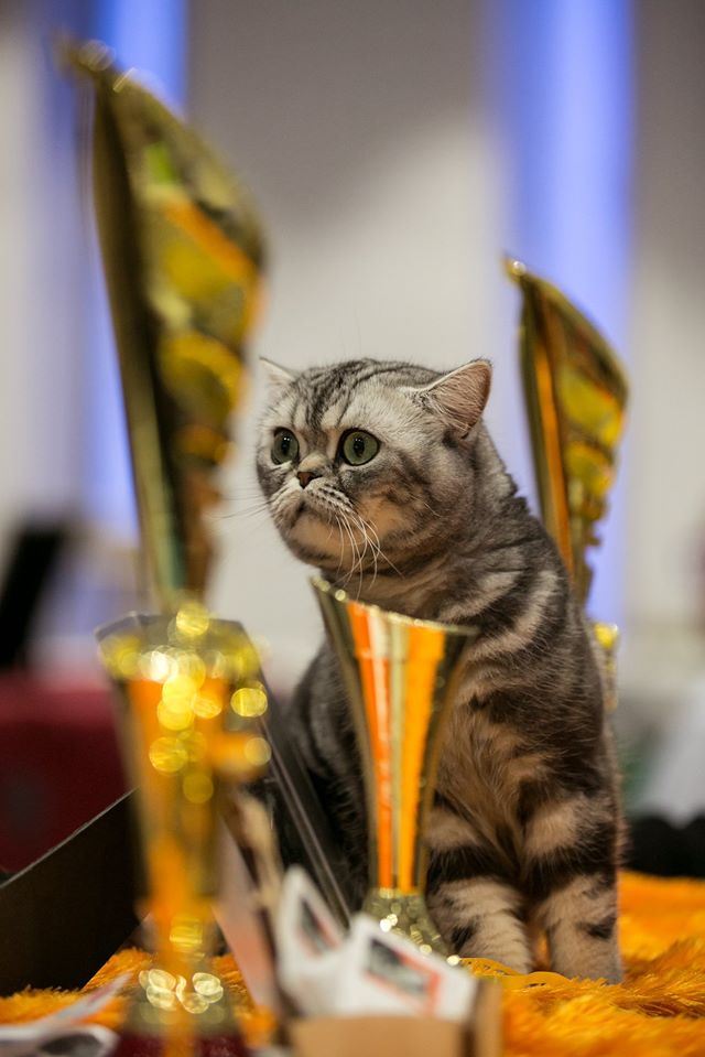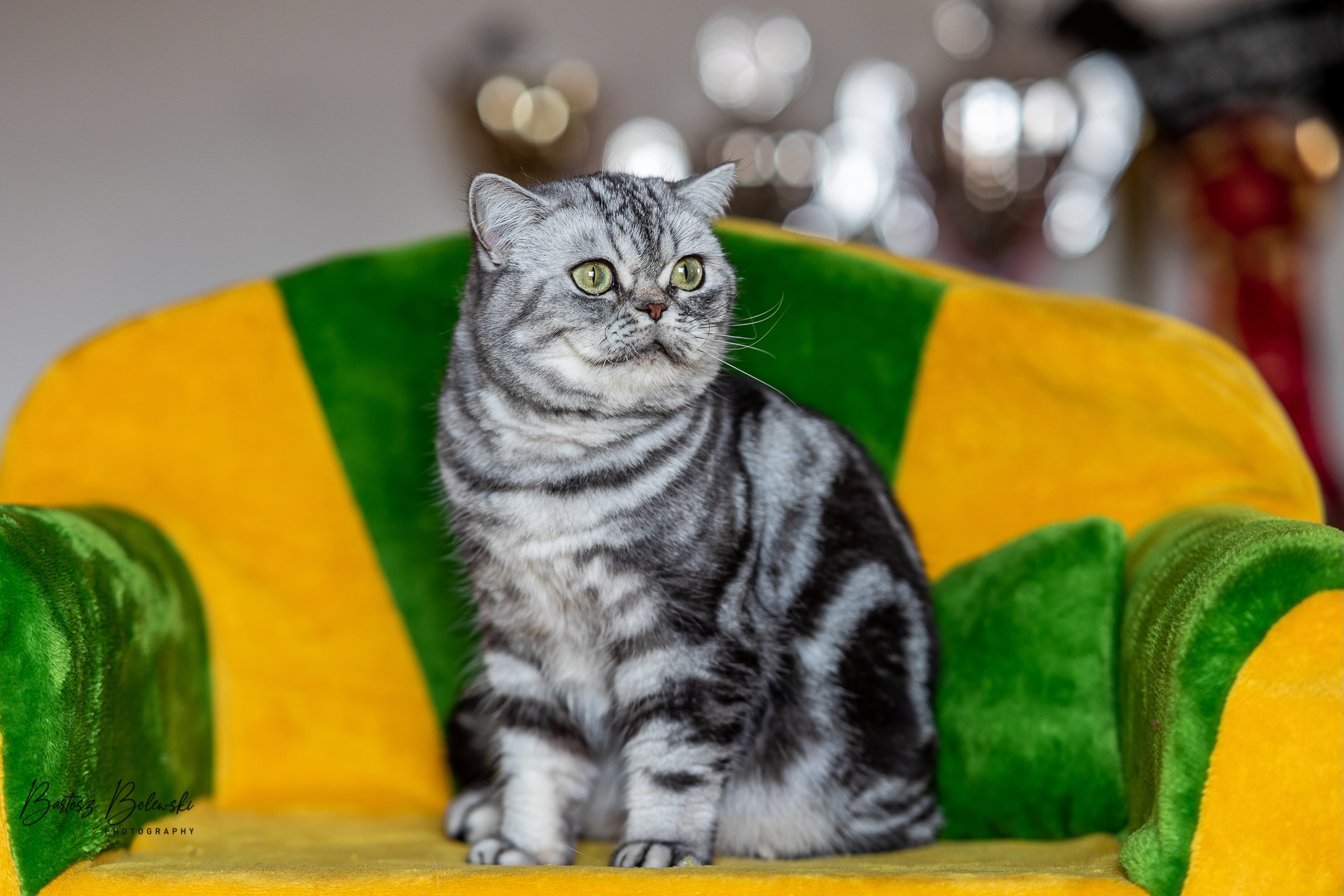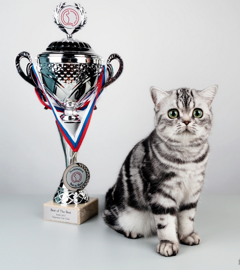 Informacje:tytuł, imię kota: NW'17 SUPREME CHAMPION LOVE ME Silver Sun*PL,JW, DSM, DVM płeć: kotka kolor: BSH ns 22 64 data urodzenia: 2017-03-17 ojciec: SC VALENTINO VAN SONSWIJCK *NL, DVM matka: IC Daisy Silver Sun *PL, JW Opis:Największy skarb w mojej hodowli. Kiedy przyszła na świat ta mała "Kruszynka" ważyła zaledwie 51 gram. Po pierwszej dobie spadła do 41 gram. Przez dwie doby nie przybierała. Mam wrażenie, że nie potrafiła ssać pokarmu. Kiedy opowiedziałem jednej z wieloletnich hodowczyń z czym mam problem i z czym walczymy. W kwintesencji usłyszałem - " wiesz Darek, ja nie ratuje takich kociąt". Ja niewiele myśląc odpowiedziałem - "Wiesz co. Gdybym ja w taki sposób selekcjonował kocięta, to powinienem zamknąć hodowlę". Wiem, że ta Osoba poczuła się urażona za moje słowa. Nasze relacje od tego momentu się znacznie pogorszyły. Po dłuższym czasie, kiedy było widać jak się rozwija i rośnie. Po zdobyciu prestiżowego tytułu National Winner 2017. Podczas jednej z rozmów po długim czasie usłyszałem - " Wiesz co Darek, ona teraz ci się odpłaca za to". Możliwe, że tutaj historia zatoczyła niepełne koło. Mam na myśli mojego ukochanego psa Korę, a teraz moją Myszkę. One obydwie przecież walczyły o życie. Już wyjaśniam o co chodzi z Myszą. Jak wspomniałem wcześniej. Kiedy się urodziła była tak maleńka i podobna do dziecka polnej myszy. Dlatego też została "MYSZKĄ". Później kiedy już coś więcej można było powiedzieć o jej charakterze i przy wystąpieniu z wnioskiem o rodowody. Trzeba było podjąć decyzję co do imienia. I tutaj trafniejszego nie udało mi się znaleźć dla jej charakteru - "Mnie nie można nie Kochać". I tak zostało imię LOVE ME. She won Excellent Titles: NW - NATIONAL WINNER 2017 JW - JUNIOR WINNER DSM - DISTINGUISSHED SHOW MERIT DVM - DISTINGUISSHED VARIETY MERIT SHOW SUCCEESES Young and kittens: Nom BIS 10x BIV 2x BIS - 9 x BIC 2x BOB 3x Adult Nom BIS 20x BIV 12x BIS 11x BOB 2x