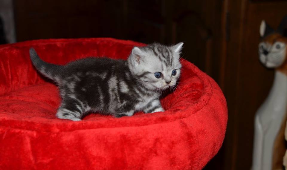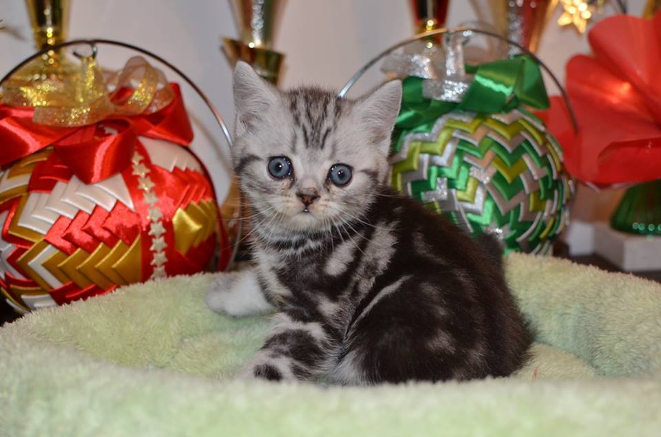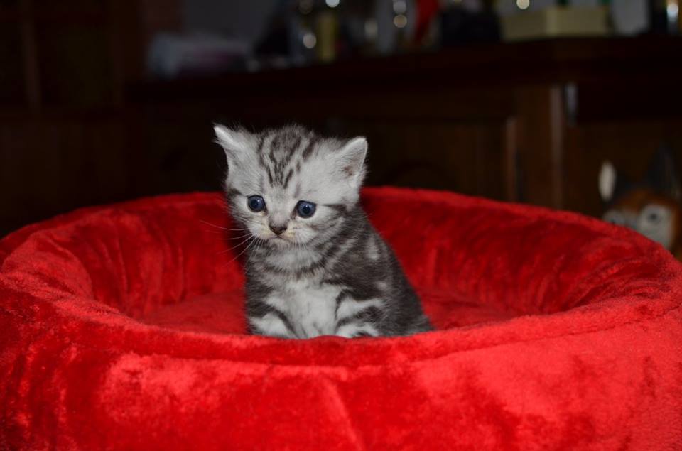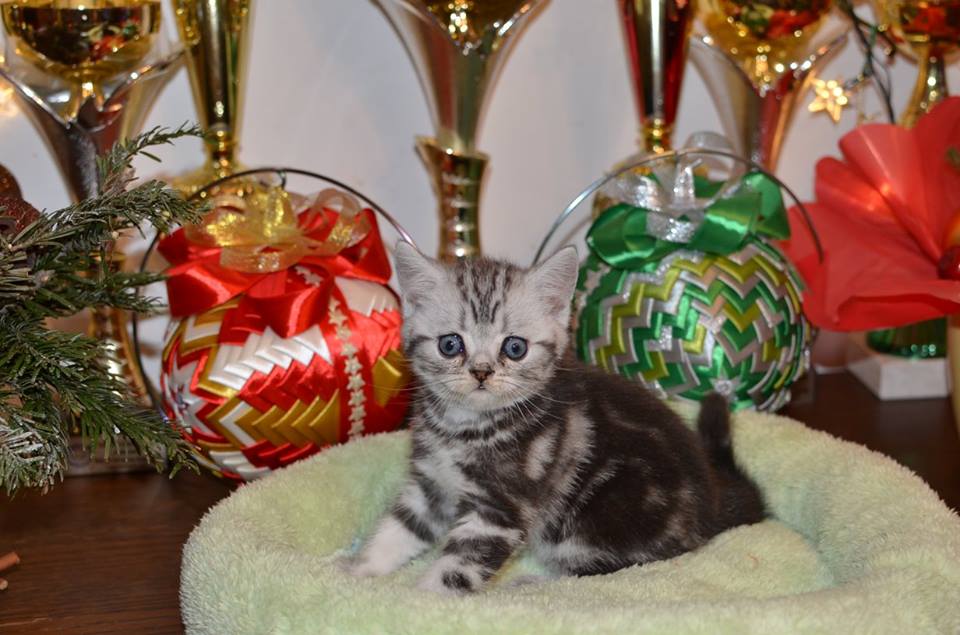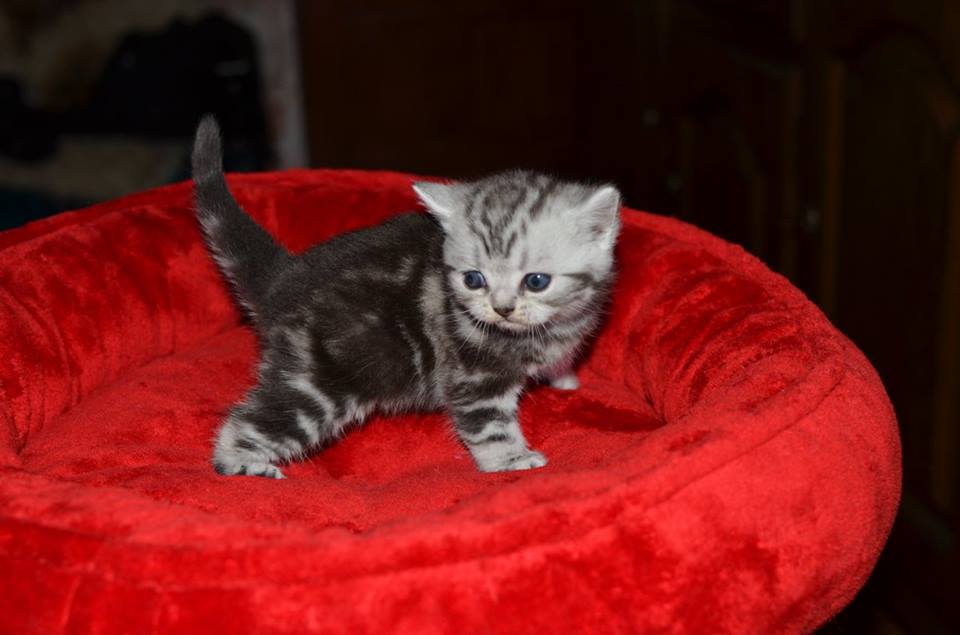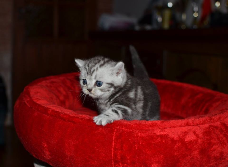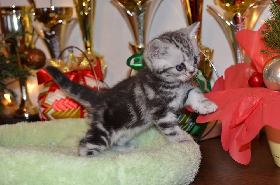 Informacje:tytuł, imię kota: PROSCAR Silver Sun *PL płeć: kocur kolor: BRI ns 22 64 data urodzenia: 2017-11-16 ojciec: SC VALENTINO VAN SONSWIJCK *NL, DVM matka: IC Daisy Silver Sun *PL, JW Opis:Jeden z wyjątkowych chłopców w miocie "O". Przypuszczałem, że w miocie będzie więcej dziewcząt aniżeli chłopaków, a tu niebywałe zaskoczenie. Z drugiego połączenia Daisy & Valentino Trzech chłopców i jedna dziewczynka. W poprzednim miocie tych rodziców mieliśmy tylko jednego chłopca i cztery dziewczynki. Ciągle zastanawiam się nad imieniem dla tego maluszka. On jest obecnie odrobinę mniejszy od swoich braci ale ma wspaniałą, bardzo krótką sierść i piękny rysunek z doskonałym kontrastem koloru szarego i czarnego. Jest to coś na co zwracam uwagę. Obserwujemy i czekamy na jego rozwój :)