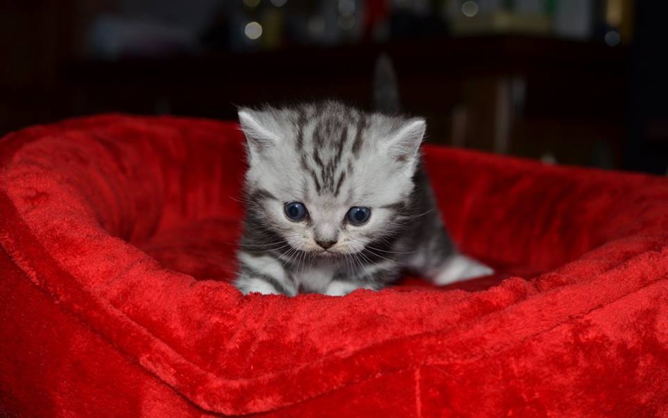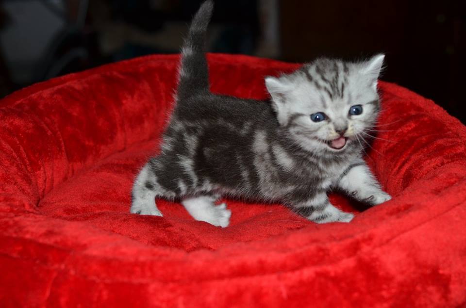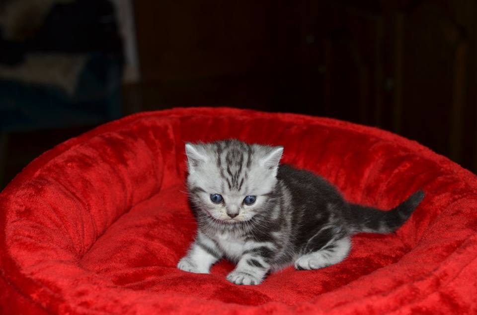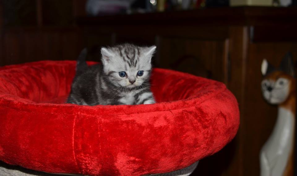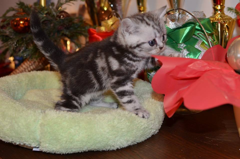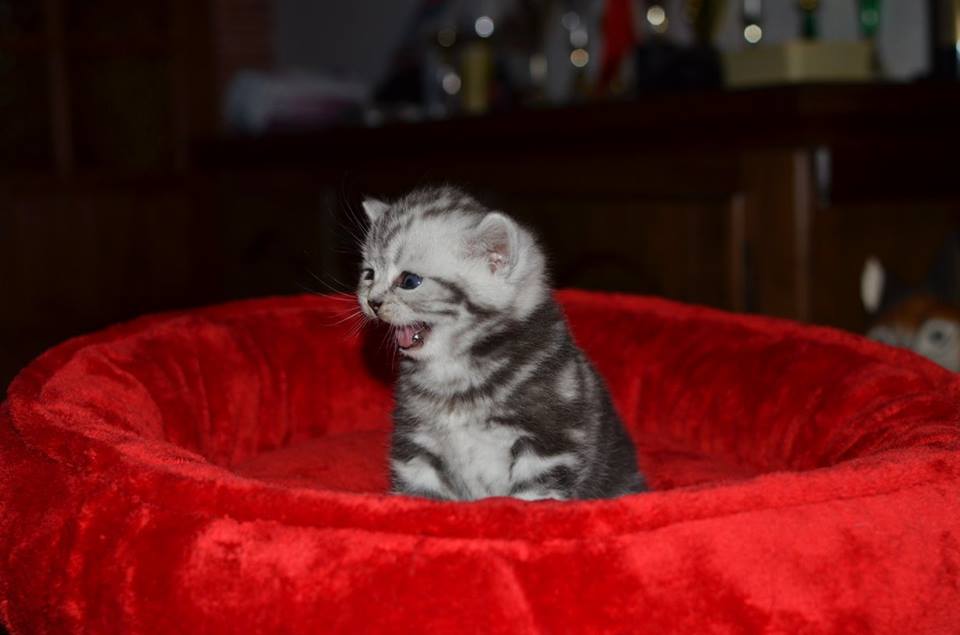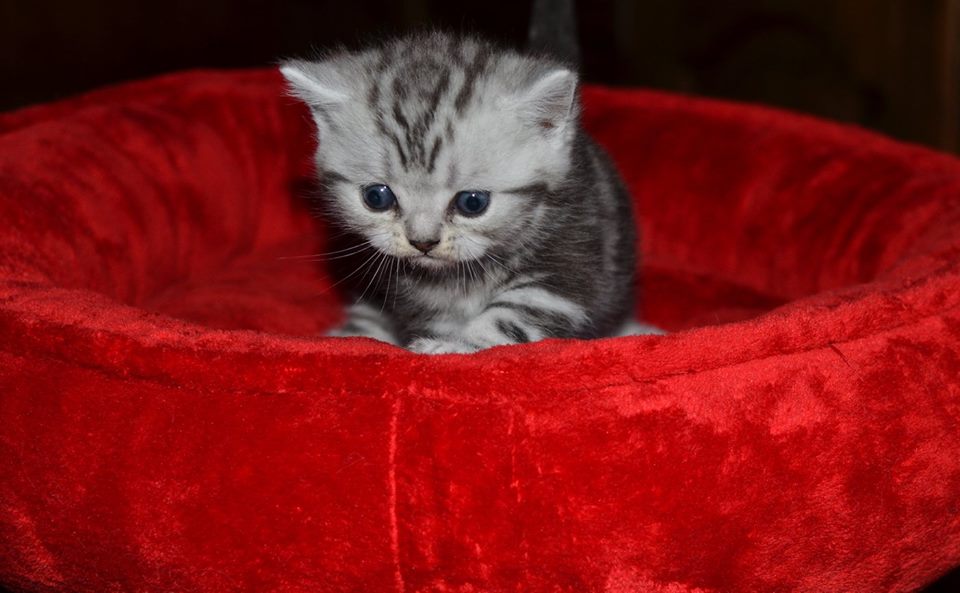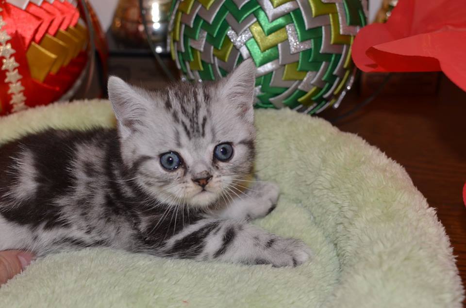 Informacje:tytuł, imię kota: PROSCAR Silver Sun *PL płeć: kocur kolor: BRI ns 22 64 data urodzenia: 2017-11-16 ojciec: SC VALENTINO VAN SONSWIJCK *NL, DVM matka: IC Daisy Silver Sun *PL, JW Opis:Jeden z wyjątkowych chłopców w miocie "O". Przypuszczałem, że w miocie będzie więcej dziewcząt aniżeli chłopaków, a tu niebywałe zaskoczenie. Z drugiego połączenia Daisy & Valentino Trzech chłopców i jedna dziewczynka. W poprzednim miocie tych rodziców mieliśmy tylko jednego chłopca i cztery dziewczynki. Ciągle zastanawiam się nad imieniem dla tego maluszka. On jest obecnie odrobinę mniejszy od swoich braci ale ma wspaniałą, bardzo krótką sierść i piękny rysunek z doskonałym kontrastem koloru szarego i czarnego. Jest to coś na co zwracam uwagę. Obserwujemy i czekamy na jego rozwój :)
