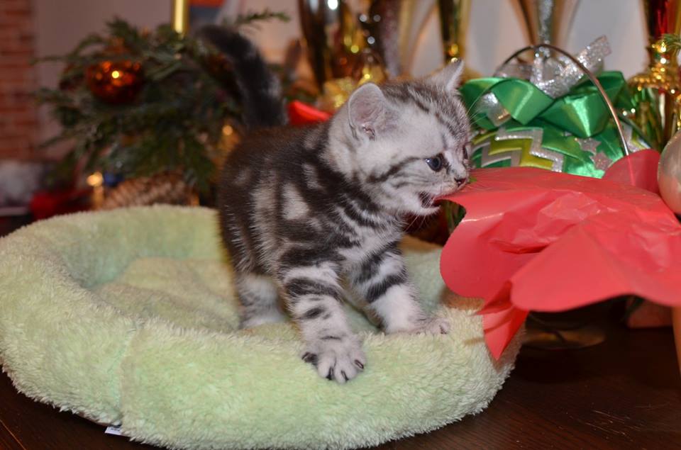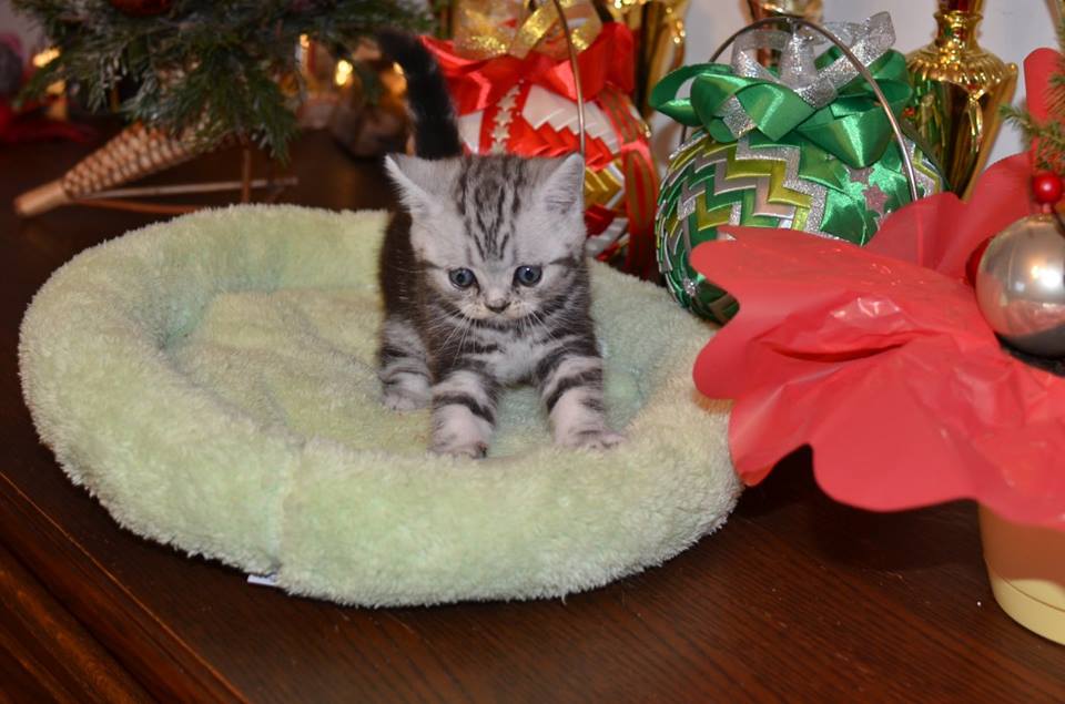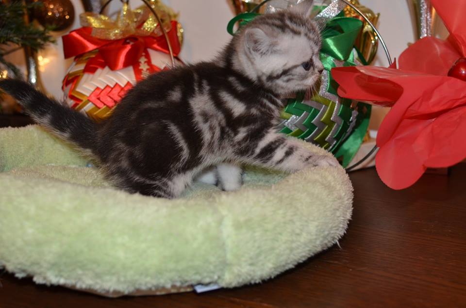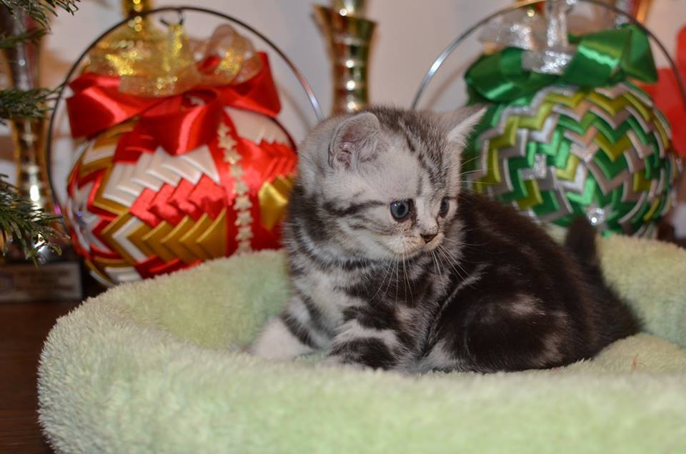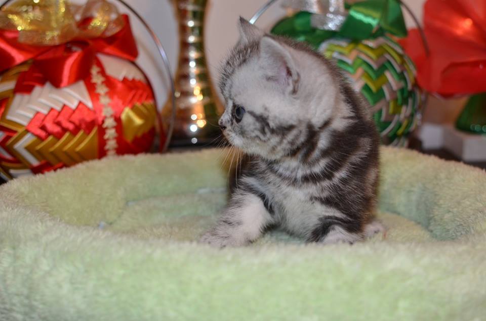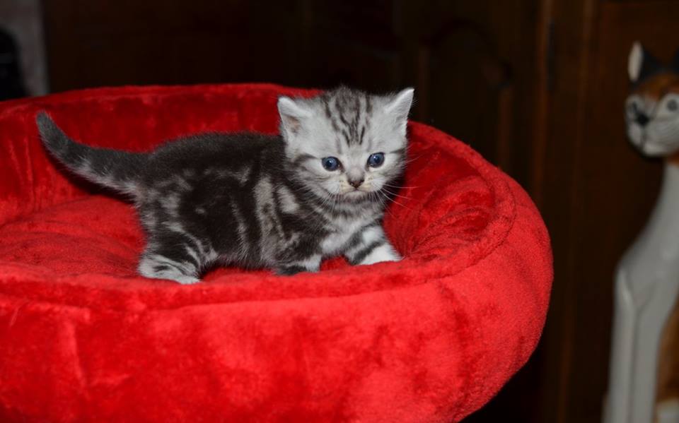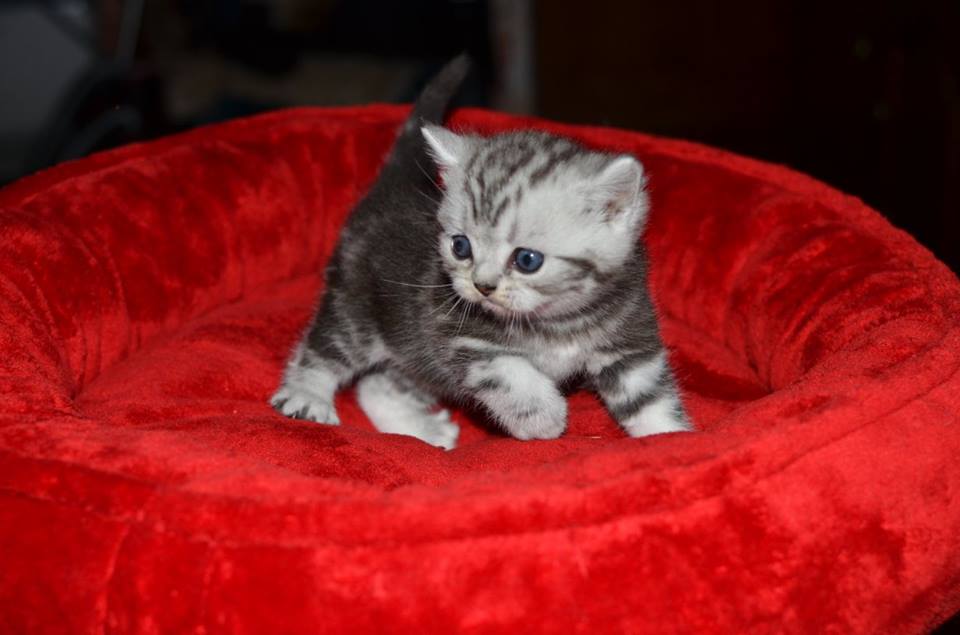 Informacje:tytuł, imię kota: PROSCAR Silver Sun *PL płeć: kocur kolor: BRI ns 22 64 data urodzenia: 2017-11-16 ojciec: SC VALENTINO VAN SONSWIJCK *NL, DVM matka: IC Daisy Silver Sun *PL, JW Opis:Jeden z wyjątkowych chłopców w miocie "O". Przypuszczałem, że w miocie będzie więcej dziewcząt aniżeli chłopaków, a tu niebywałe zaskoczenie. Z drugiego połączenia Daisy & Valentino Trzech chłopców i jedna dziewczynka. W poprzednim miocie tych rodziców mieliśmy tylko jednego chłopca i cztery dziewczynki. Ciągle zastanawiam się nad imieniem dla tego maluszka. On jest obecnie odrobinę mniejszy od swoich braci ale ma wspaniałą, bardzo krótką sierść i piękny rysunek z doskonałym kontrastem koloru szarego i czarnego. Jest to coś na co zwracam uwagę. Obserwujemy i czekamy na jego rozwój :)