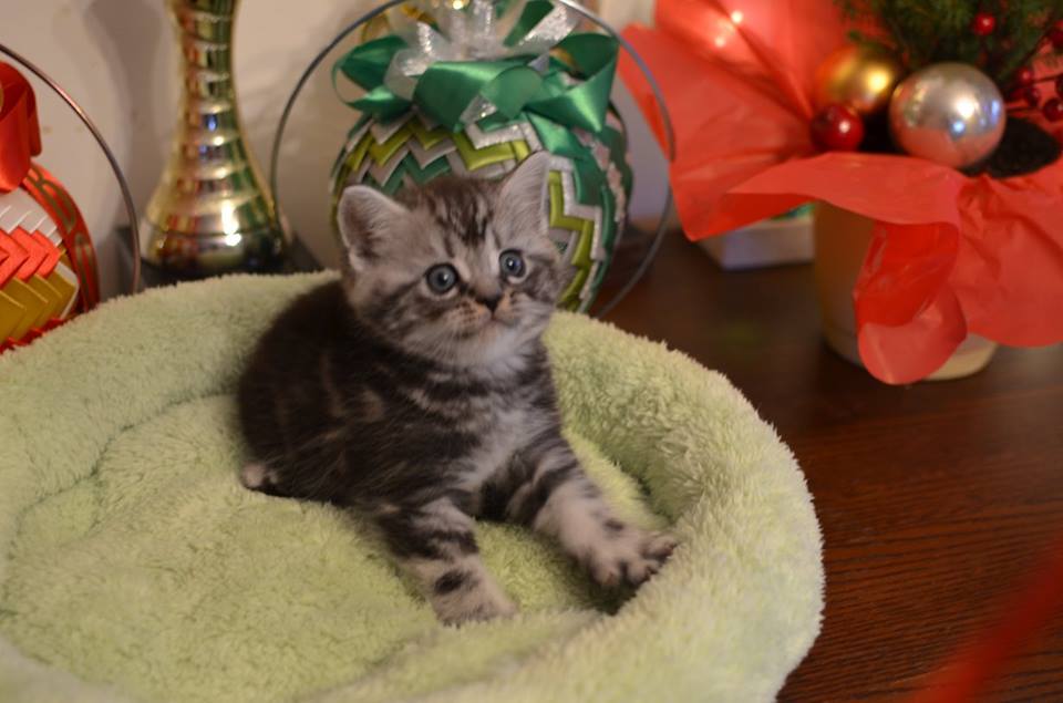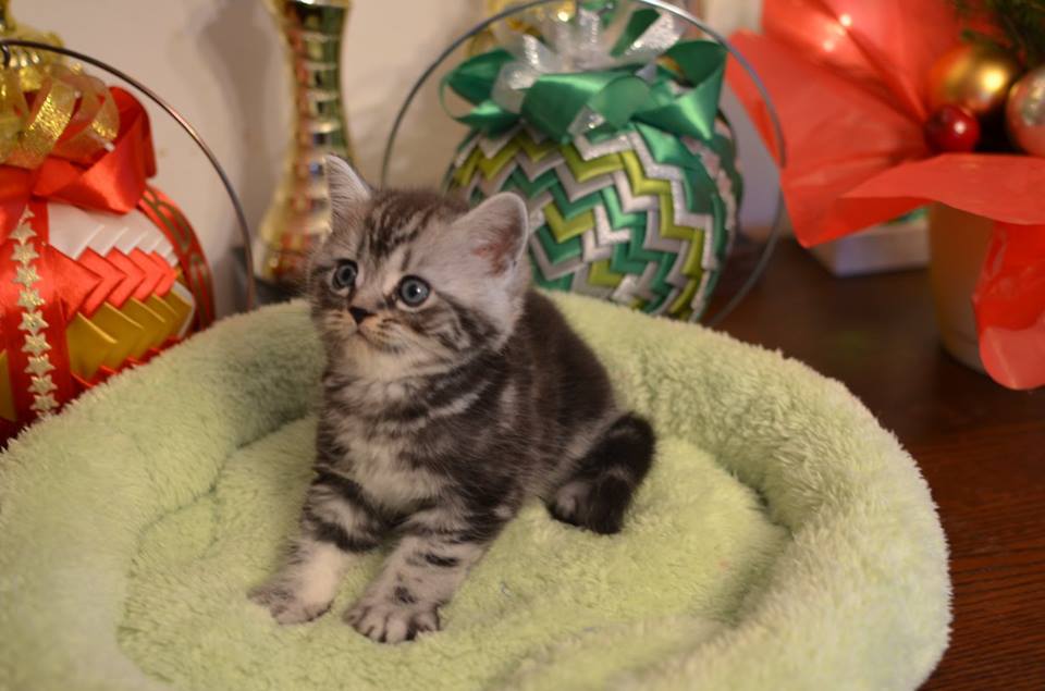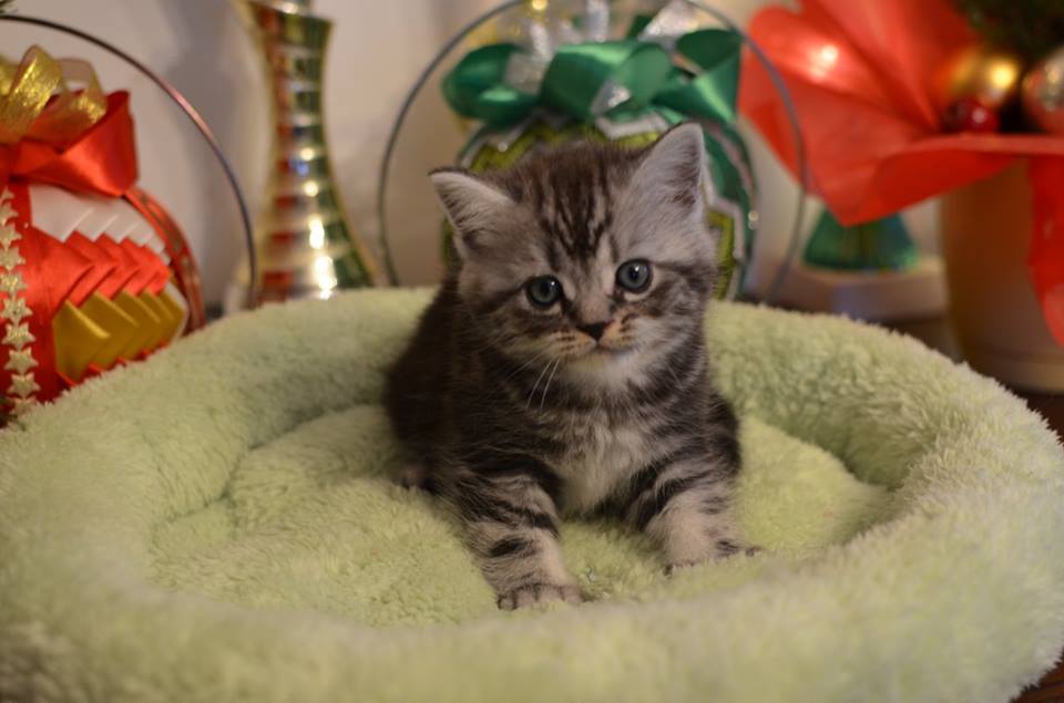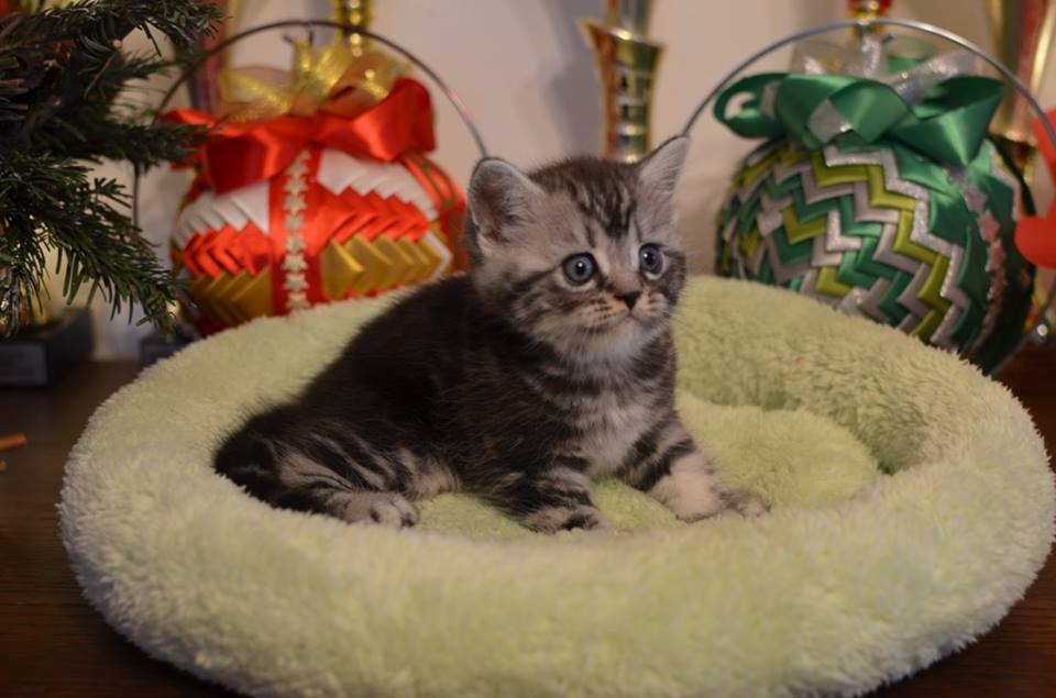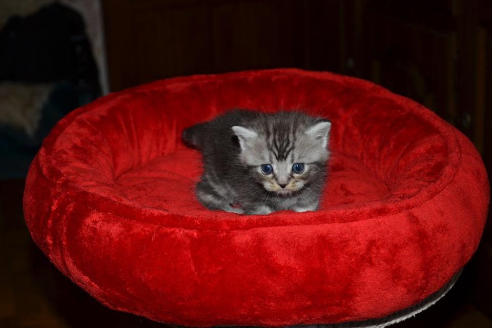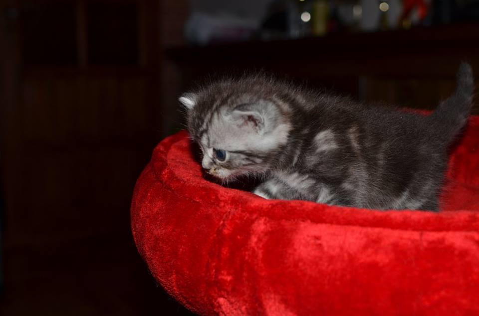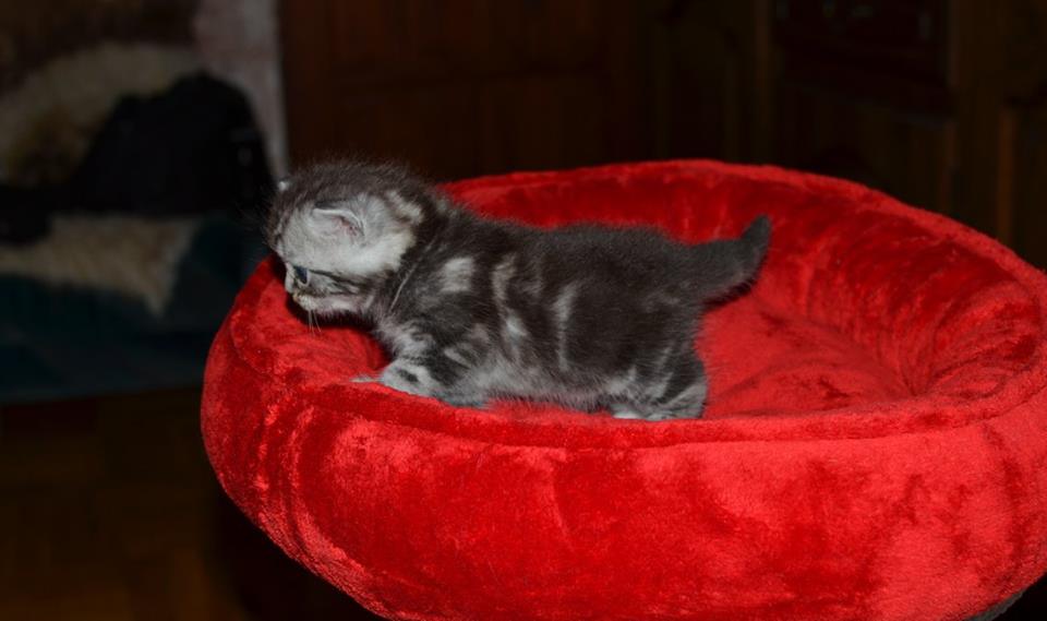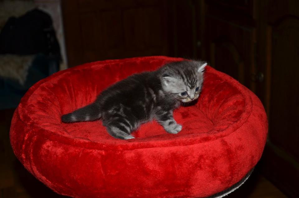 Informacje:tytuł, imię kota: OKTAWIUSZ Silver Sun *PL płeć: kocur kolor: BRI ns 22 64 data urodzenia: 2017-11-16 ojciec: SC VALENTINO VAN SONSWIJCK *NL, DVM matka: IC Daisy Silver Sun *PL, JW Opis:Trzeci z wyjątkowych chłopców w miocie "O". Imię dla tego maluszka już wybrała Pani Iwona, z którą w przyszłości zamieszka Oktawiusz vel "Morusek". Morusek stąd, że ssąc mleko mamy miał przebarwienia na pyszczku od mleka i śliny. Zawsze miał brązowawy pyszczek. On jest obecnie drugim co do wielkości z kocurów. Posiada ciemny kontrast i krótką sierść, wysokie czoło i ładnie rozstawione uszy. Obecnie obserwujemy i czekamy na jego rozwój :) Mam nadzieję, że pięknie będzie się rozwijał. Przypuszczałem, że w miocie będzie więcej dziewcząt aniżeli chłopaków, a tu niebywałe zaskoczenie. Z drugiego połączenia Daisy & Valentino Trzech chłopców i jedna dziewczynka. W poprzednim miocie tych rodziców mieliśmy tylko jednego chłopca i cztery dziewczynki.