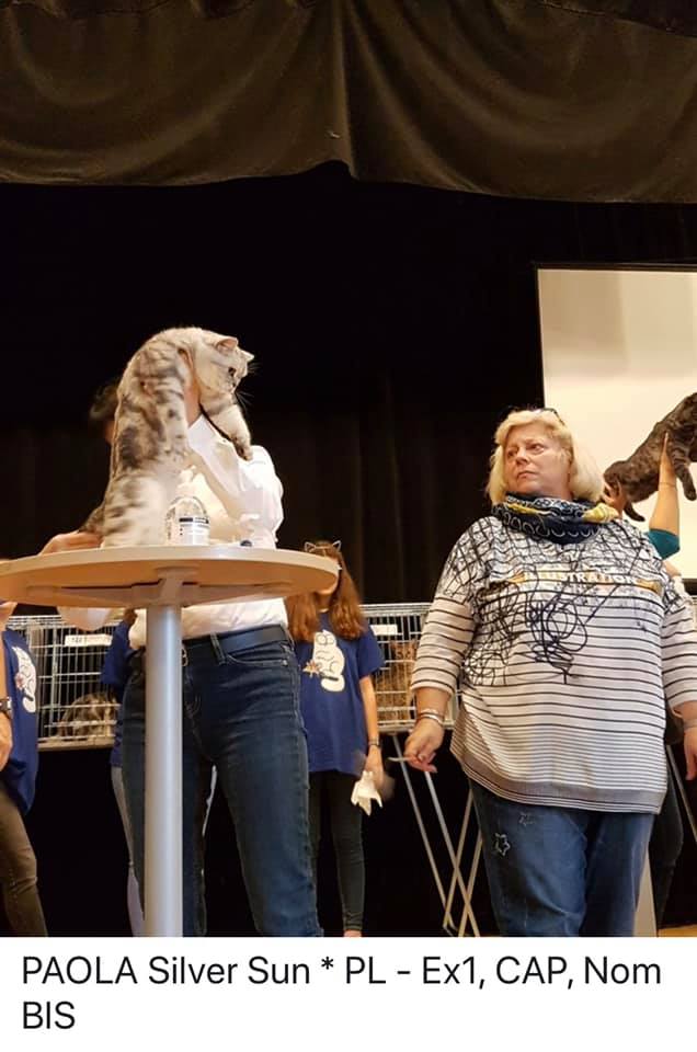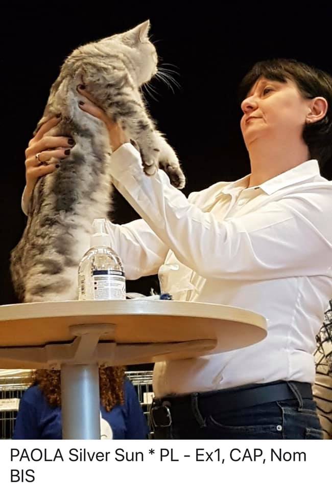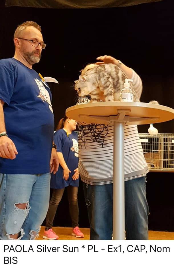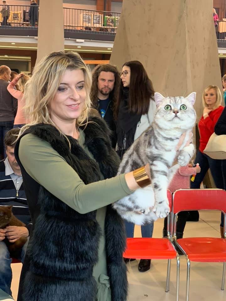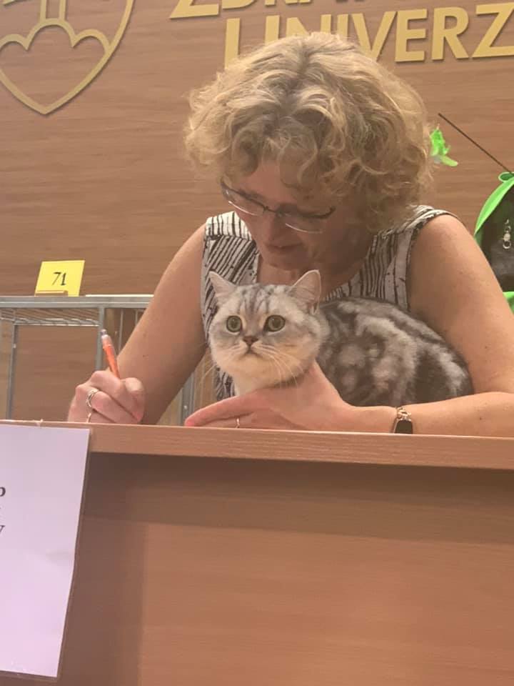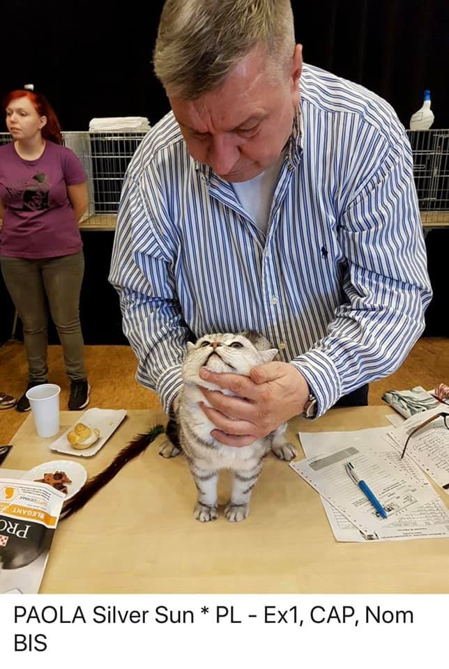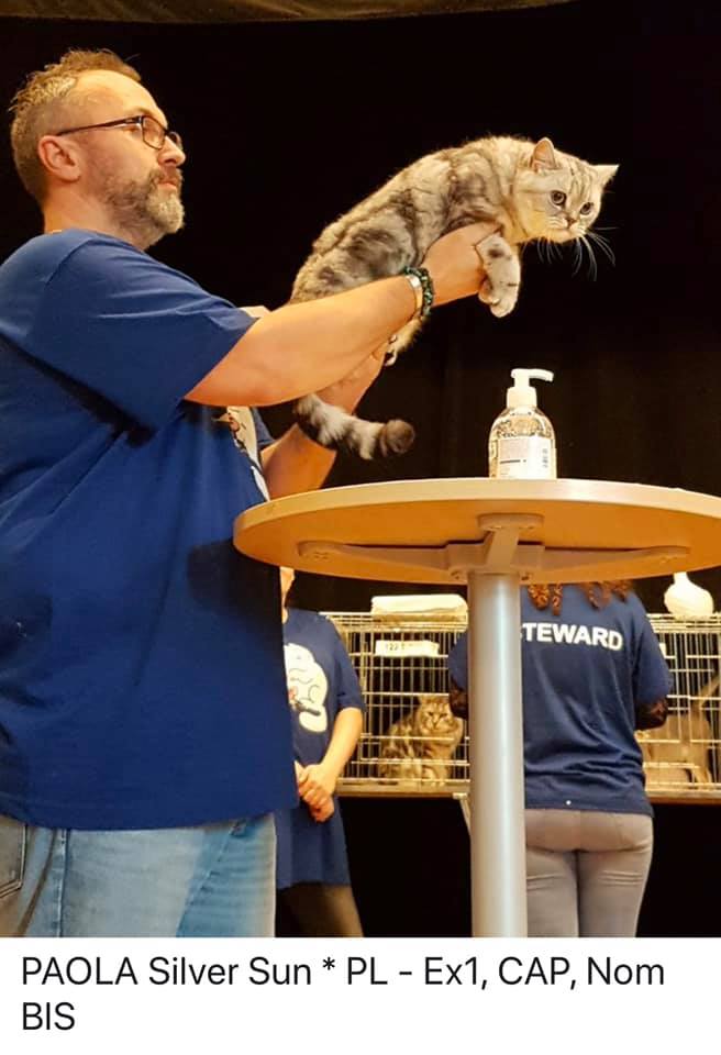 Informacje:tytuł, imię kota: IPPAOLA Silver Sun* PL płeć: kotka kolor: BSH ns 22 64 data urodzenia: 2018-04-02 ojciec: SC VALENTINO VAN SONSWIJCK *NL, DVM matka: IC ZVEZDOCHKA SWEET BEAST* UA Opis:To jest bardzo liczny miot naszej Gwiazdki 6 Maluchów. Paola jest jedną z czwórki koteczek w tym miocie. Od chwili narodzin jedną z największych koteczek z miotu. Ma wspaniały ujmujący charakter. Uwielbia się przytulać ocierać się. Jest niesamowitą gadułą. Ciągle coś gada w swoim kocim języku, a zwłaszcza kiedy rozmawiam przez telefon. Jest pięknie rośnie rozwiniętą koteczką. Obecnie waży około 3000 gram. Niestety zbyt wcześnie ją wysterylizowałem. Azapowiada się na Księżniczkę Od 20 października 2019 mieszka ze wspaniałą rodziną na Słowacji. To Lubica zapragnęła mieć drugą koteczkę ode mnie w takim umaszczeniu. Nadmienię, że od listopada 2017 roku z Lubicą i Martinem mieszkastarsza przyrodnia siostra Lolly. Towarzyszą jej także najstarsza koteczka o imieniu WiFi, kocurek liliowy Ares i oczywiście wyżej wspomniana Lolinka. Bardzo się cieszę, że Lubica i Martin zdecydowali się aby prezentować na wystawach Brytyjską Kocią Załogę. Jestem z nich bardzo dumny . A oto sukcesy Paoli Obecnie posiada już tytuł PREMIOR. Do tytułu International Premiora brakuje jej jednego certyfikatu.