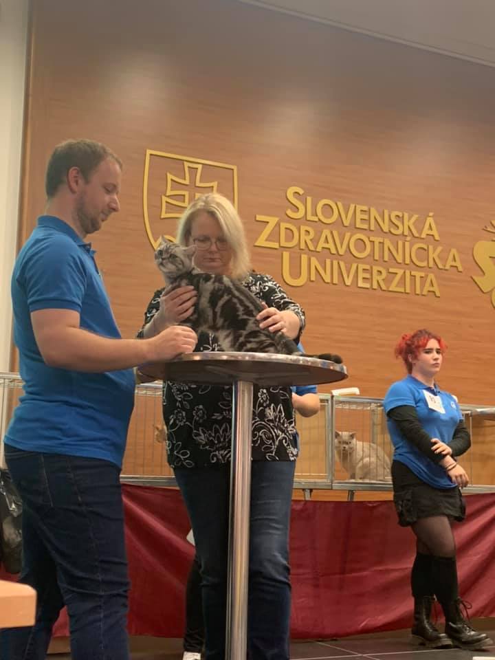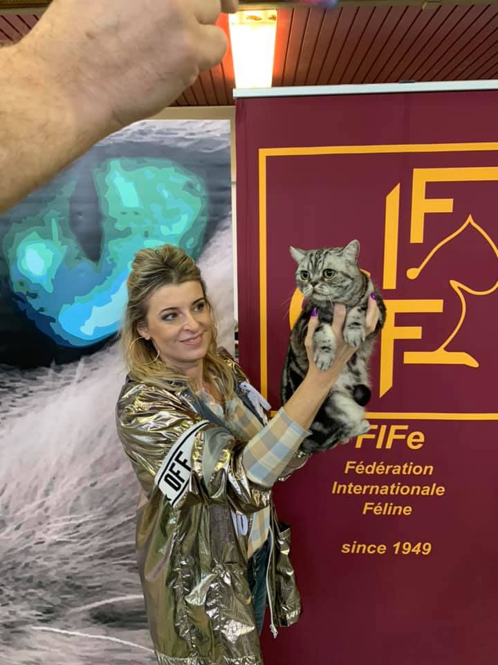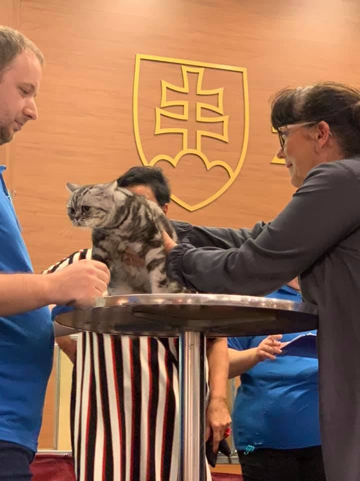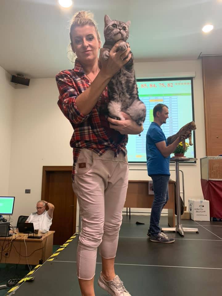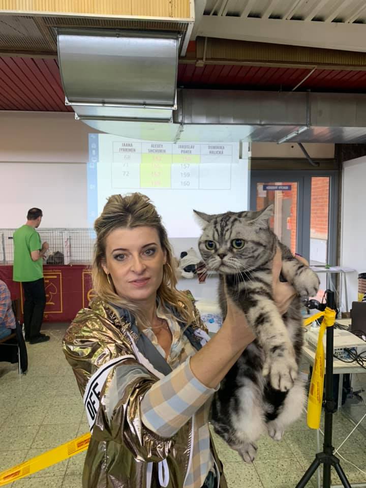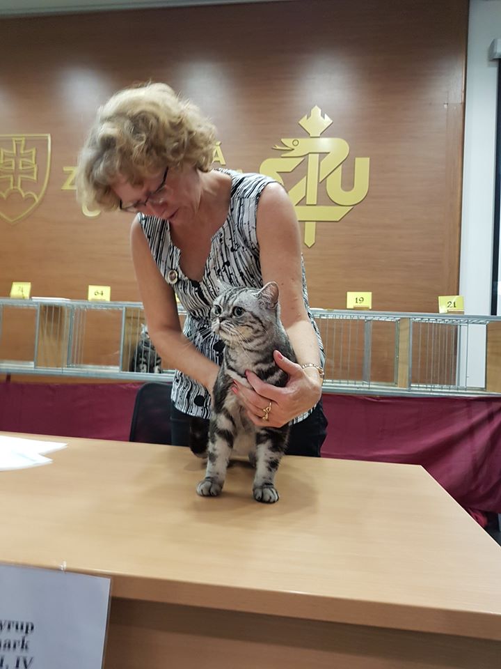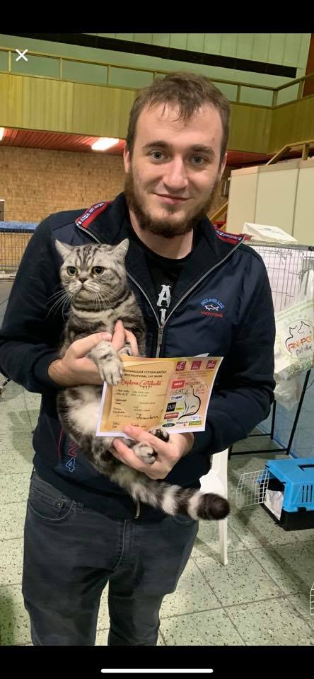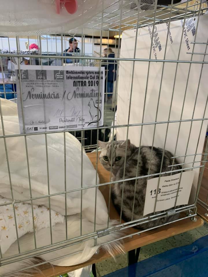 Informacje:tytuł, imię kota: GIPLOLLY Silver Sun* PL płeć: kotka kolor: BSH ns 22 64 data urodzenia: 2017-03-17 ojciec: SC VALENTINO VAN SONSWIJCK *NL, DVM matka: IC Daisy Silver Sun *PL, JW Opis:Lolly jest wspaniałą koteczką o bardzo ujmującym charakterze. Od przeszło dwóch lat mieszka ze wspaniałą rodziną na Słowacji. To Lubica w niej się zakochała kiedy byłem na wystawie w październiku 2017 roku w Bańskiej Bystrzycy. Lolly mieszka w miejscowości Partizanske z Lubicą i Martinem, a także w towarzystwie kociej społeczności. Towarzyszą jej najstarsza koteczka o imieniu WiFi, kocurek liliowy Ares i młodsza przyrodnia siostra Paola. Lubica zdecydowała się aby prezentować na wystawach Lollynkę z czego jestem bardzo dumny i za co dziękuję Lubiece. A oto sukcesy Lolly Obecnie posiada już tytuł GRAND INTERNATIONAL PREMIOR