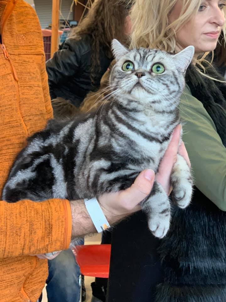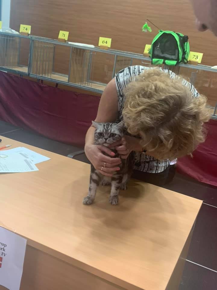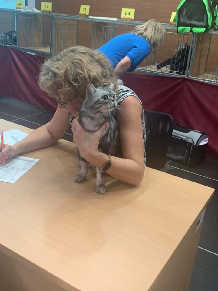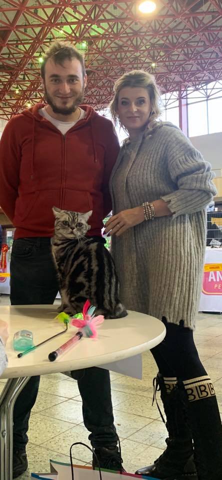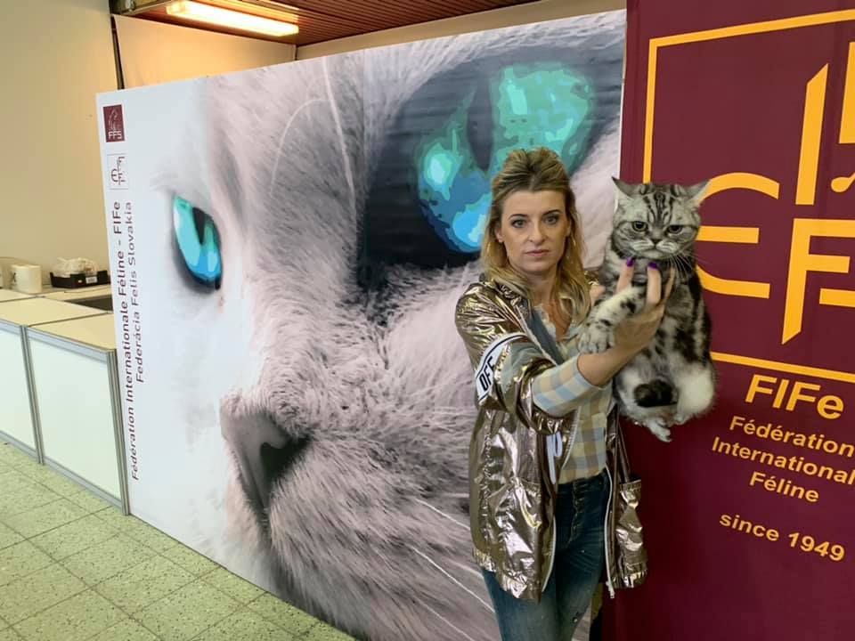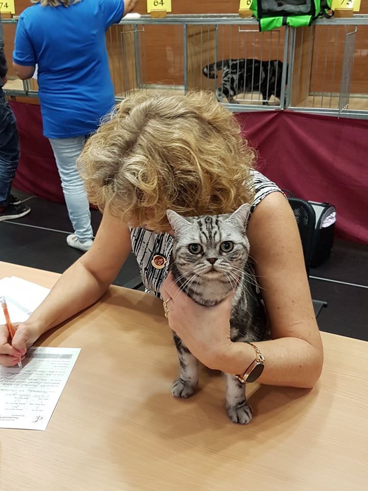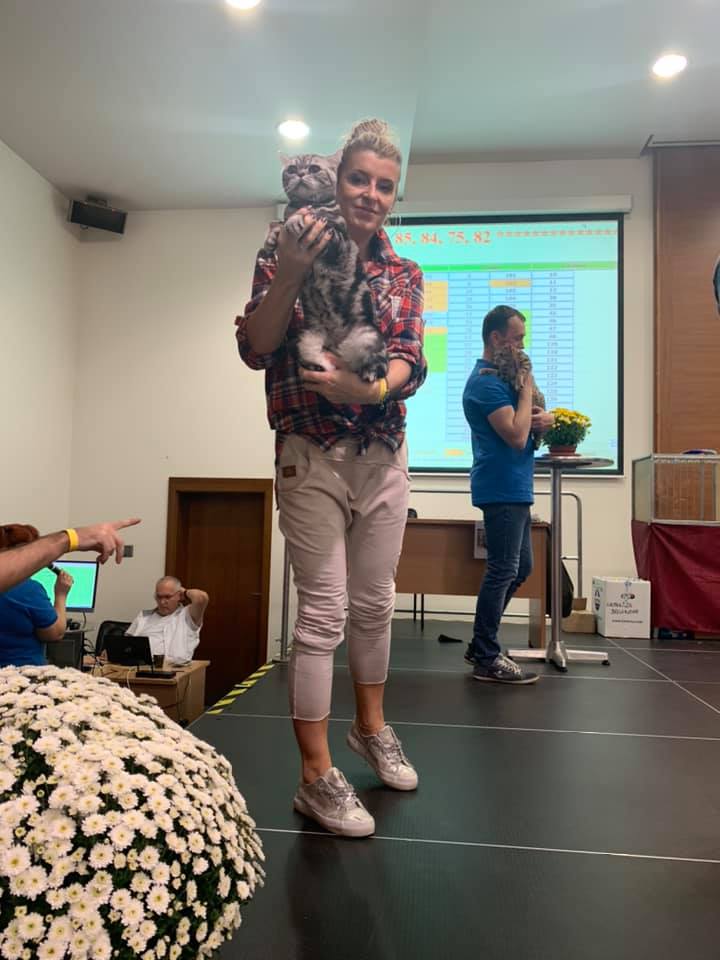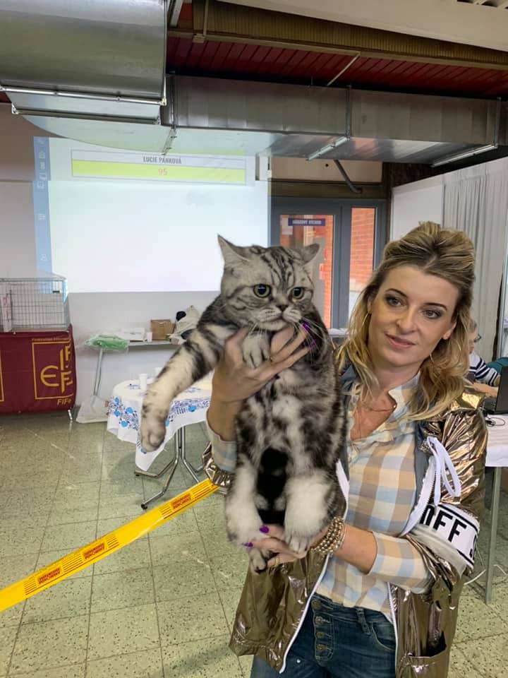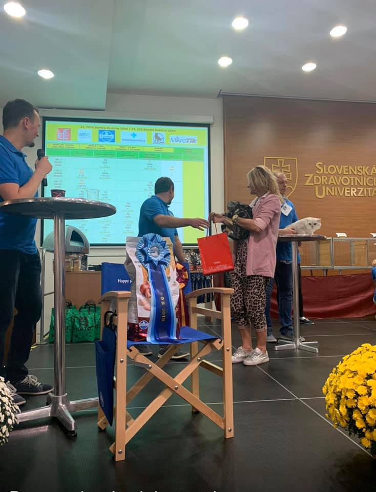 Informacje:tytuł, imię kota: GIPLOLLY Silver Sun* PL płeć: kotka kolor: BSH ns 22 64 data urodzenia: 2017-03-17 ojciec: SC VALENTINO VAN SONSWIJCK *NL, DVM matka: IC Daisy Silver Sun *PL, JW Opis:Lolly jest wspaniałą koteczką o bardzo ujmującym charakterze. Od przeszło dwóch lat mieszka ze wspaniałą rodziną na Słowacji. To Lubica w niej się zakochała kiedy byłem na wystawie w październiku 2017 roku w Bańskiej Bystrzycy. Lolly mieszka w miejscowości Partizanske z Lubicą i Martinem, a także w towarzystwie kociej społeczności. Towarzyszą jej najstarsza koteczka o imieniu WiFi, kocurek liliowy Ares i młodsza przyrodnia siostra Paola. Lubica zdecydowała się aby prezentować na wystawach Lollynkę z czego jestem bardzo dumny i za co dziękuję Lubiece. A oto sukcesy Lolly Obecnie posiada już tytuł GRAND INTERNATIONAL PREMIOR