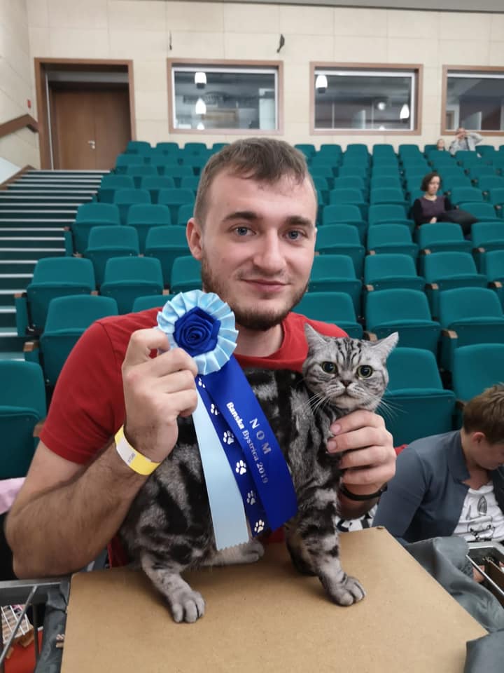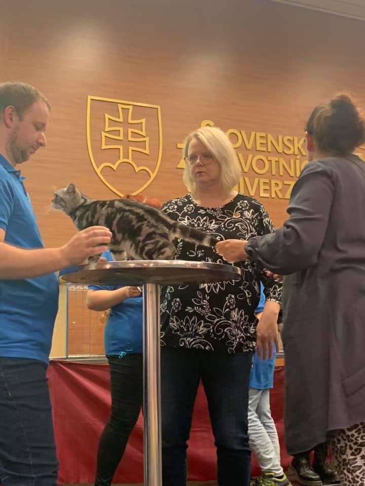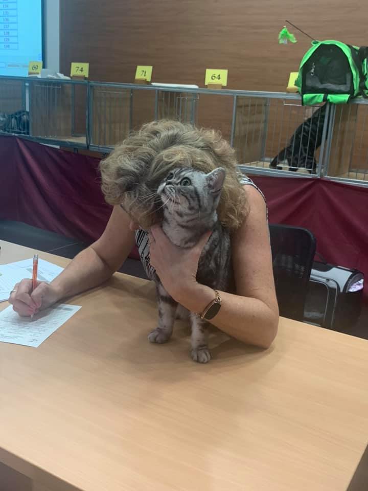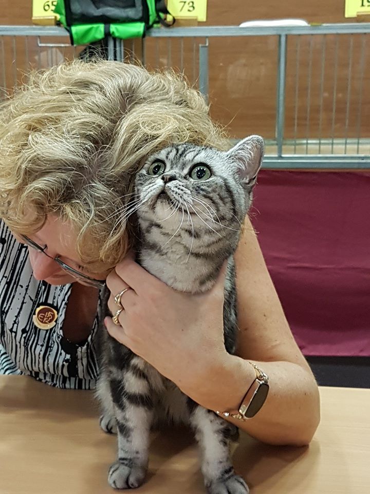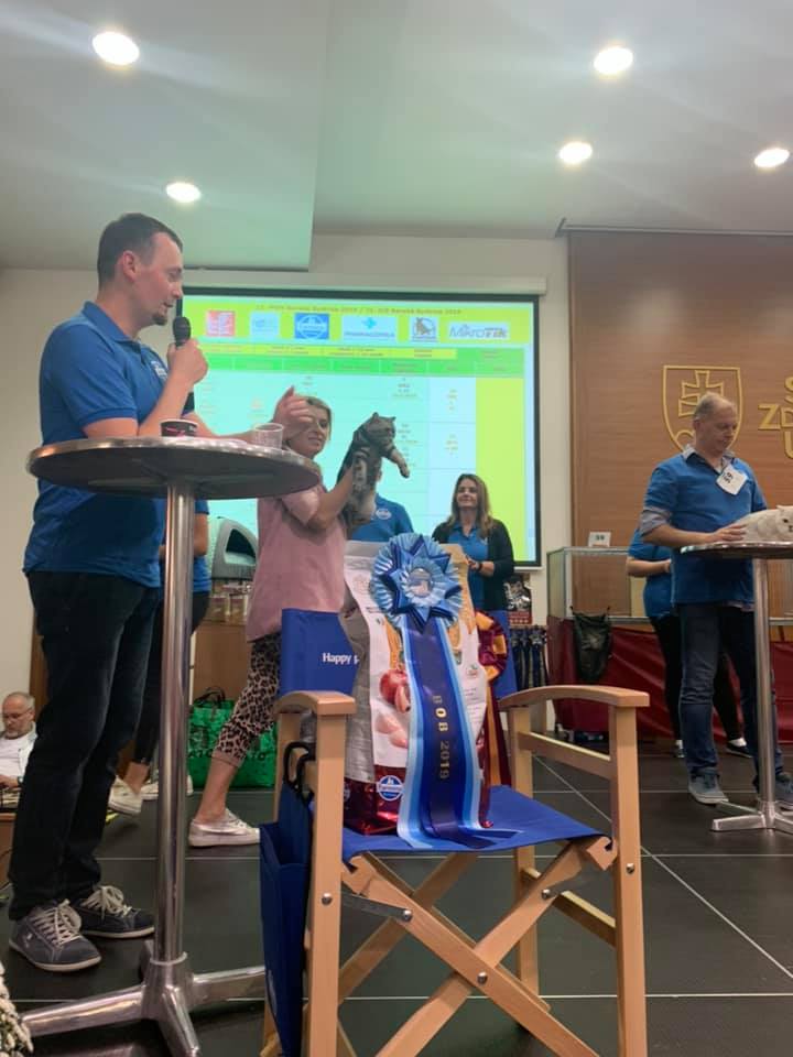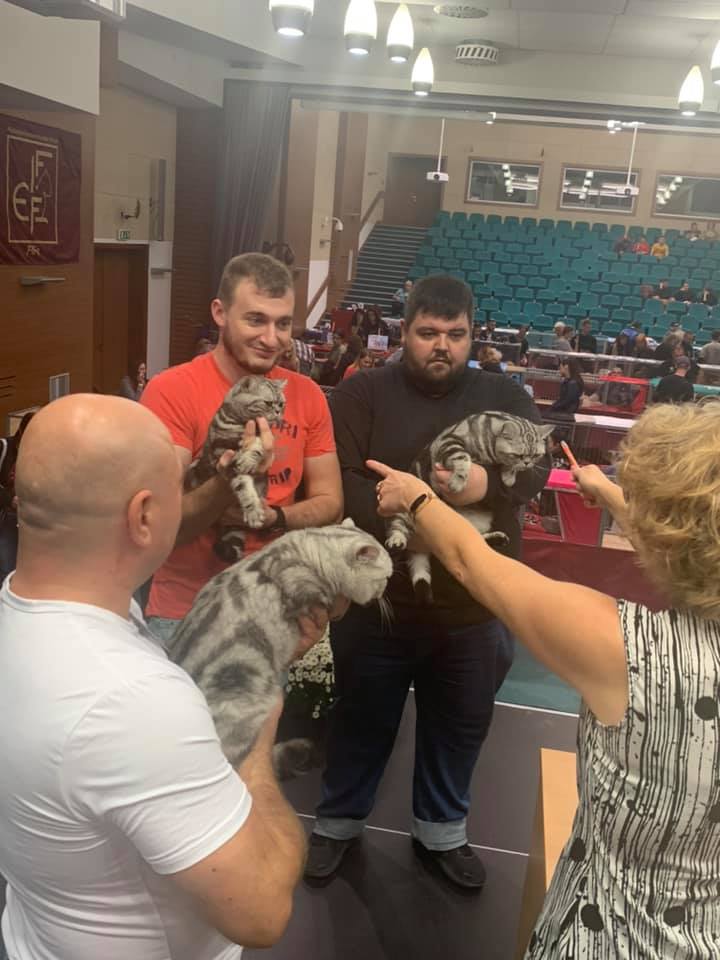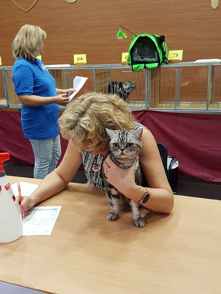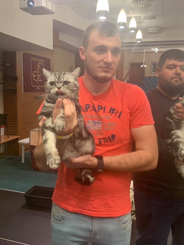 Informacje:tytuł, imię kota: GIPLOLLY Silver Sun* PL płeć: kotka kolor: BSH ns 22 64 data urodzenia: 2017-03-17 ojciec: SC VALENTINO VAN SONSWIJCK *NL, DVM matka: IC Daisy Silver Sun *PL, JW Opis:Lolly jest wspaniałą koteczką o bardzo ujmującym charakterze. Od przeszło dwóch lat mieszka ze wspaniałą rodziną na Słowacji. To Lubica w niej się zakochała kiedy byłem na wystawie w październiku 2017 roku w Bańskiej Bystrzycy. Lolly mieszka w miejscowości Partizanske z Lubicą i Martinem, a także w towarzystwie kociej społeczności. Towarzyszą jej najstarsza koteczka o imieniu WiFi, kocurek liliowy Ares i młodsza przyrodnia siostra Paola. Lubica zdecydowała się aby prezentować na wystawach Lollynkę z czego jestem bardzo dumny i za co dziękuję Lubiece. A oto sukcesy Lolly Obecnie posiada już tytuł GRAND INTERNATIONAL PREMIOR