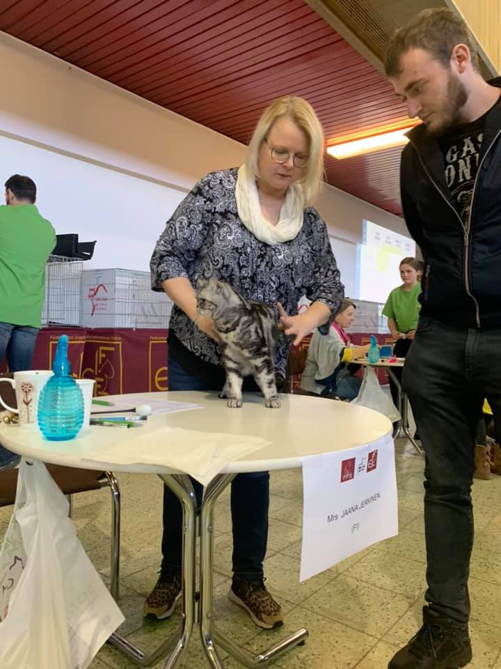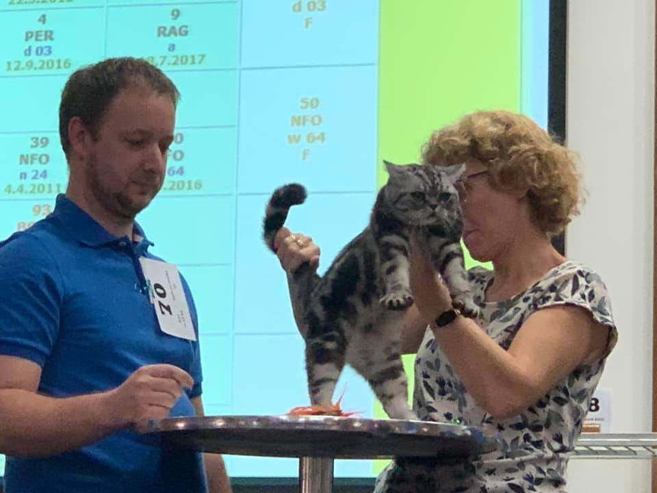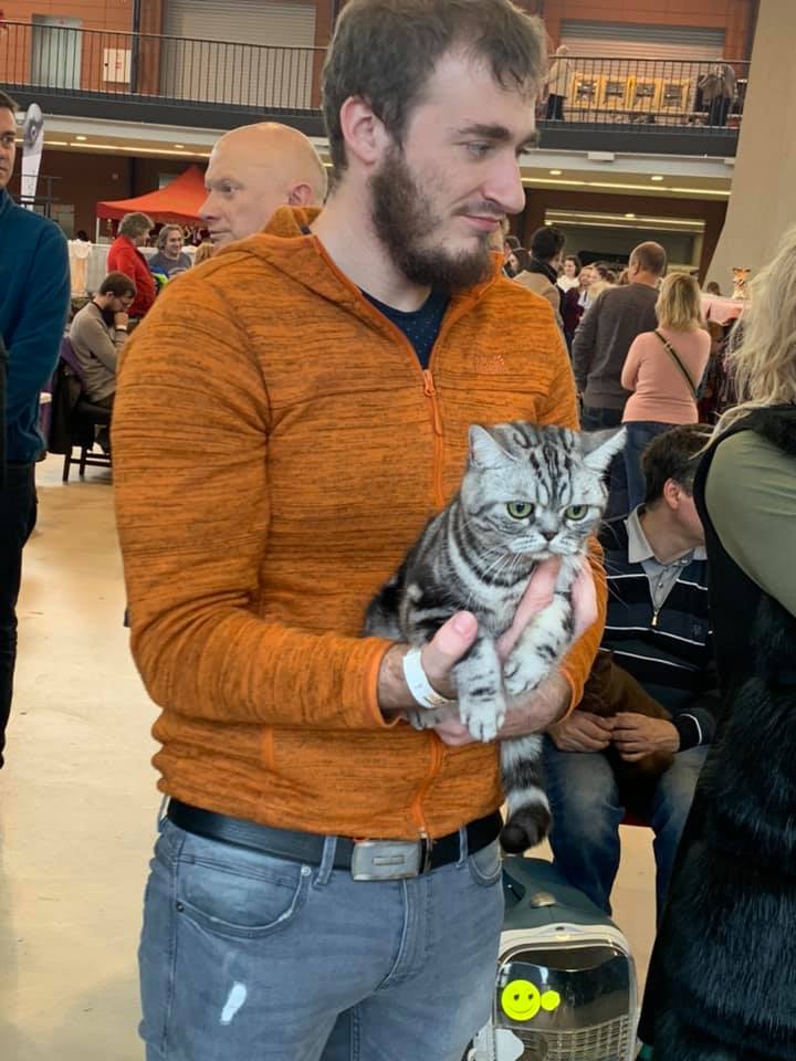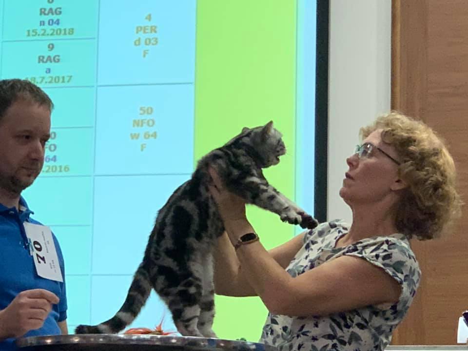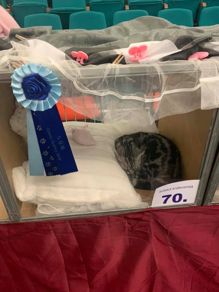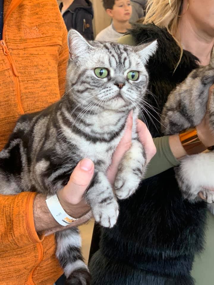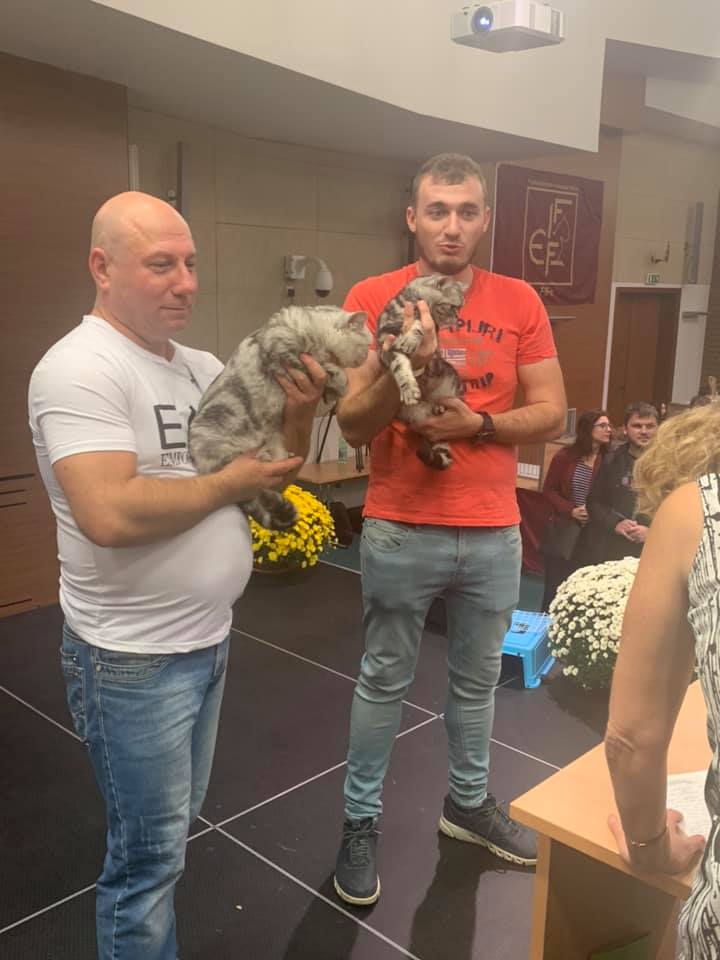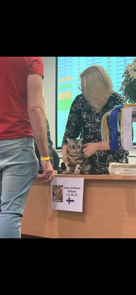 Informacje:tytuł, imię kota: GIPLOLLY Silver Sun* PL płeć: kotka kolor: BSH ns 22 64 data urodzenia: 2017-03-17 ojciec: SC VALENTINO VAN SONSWIJCK *NL, DVM matka: IC Daisy Silver Sun *PL, JW Opis:Lolly jest wspaniałą koteczką o bardzo ujmującym charakterze. Od przeszło dwóch lat mieszka ze wspaniałą rodziną na Słowacji. To Lubica w niej się zakochała kiedy byłem na wystawie w październiku 2017 roku w Bańskiej Bystrzycy. Lolly mieszka w miejscowości Partizanske z Lubicą i Martinem, a także w towarzystwie kociej społeczności. Towarzyszą jej najstarsza koteczka o imieniu WiFi, kocurek liliowy Ares i młodsza przyrodnia siostra Paola. Lubica zdecydowała się aby prezentować na wystawach Lollynkę z czego jestem bardzo dumny i za co dziękuję Lubiece. A oto sukcesy Lolly Obecnie posiada już tytuł GRAND INTERNATIONAL PREMIOR