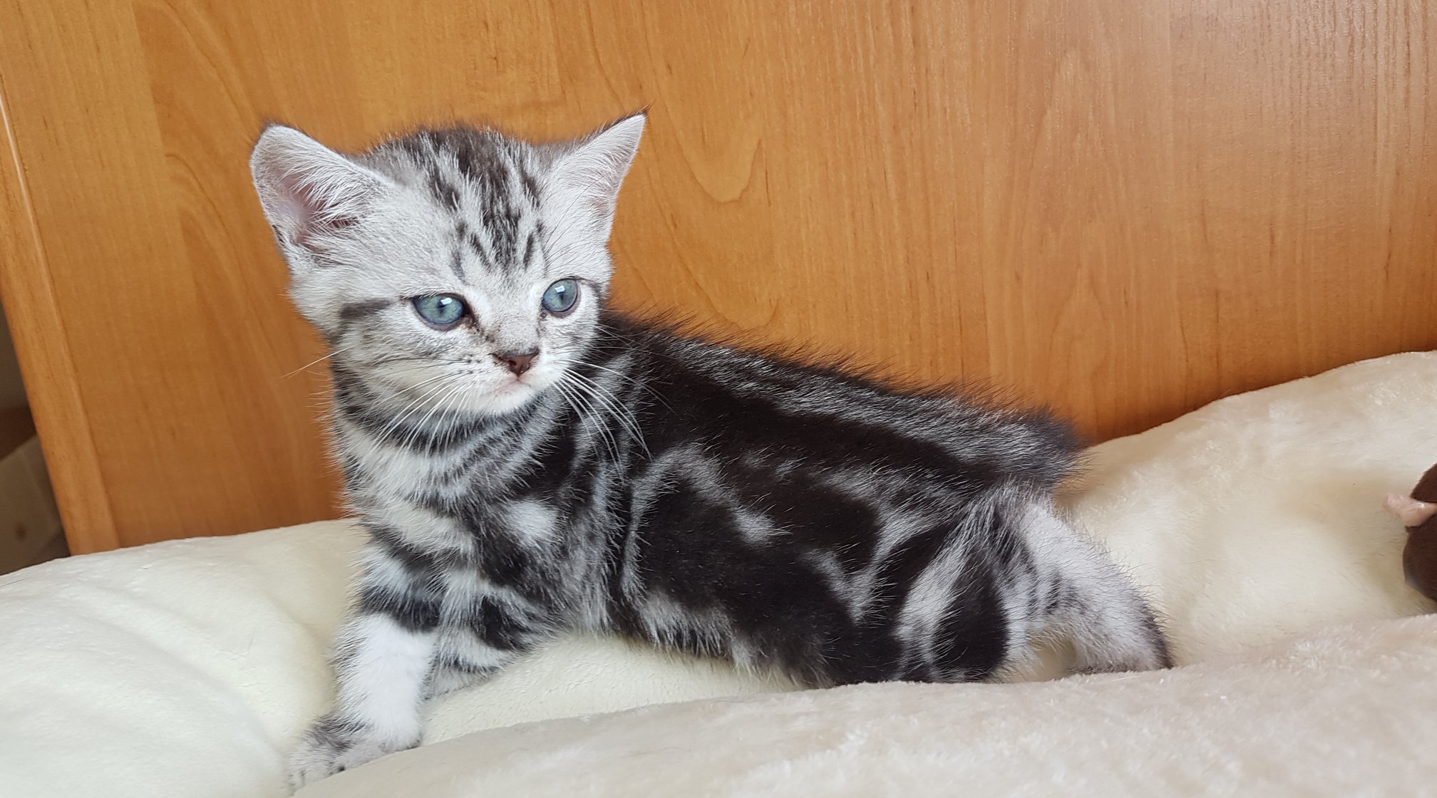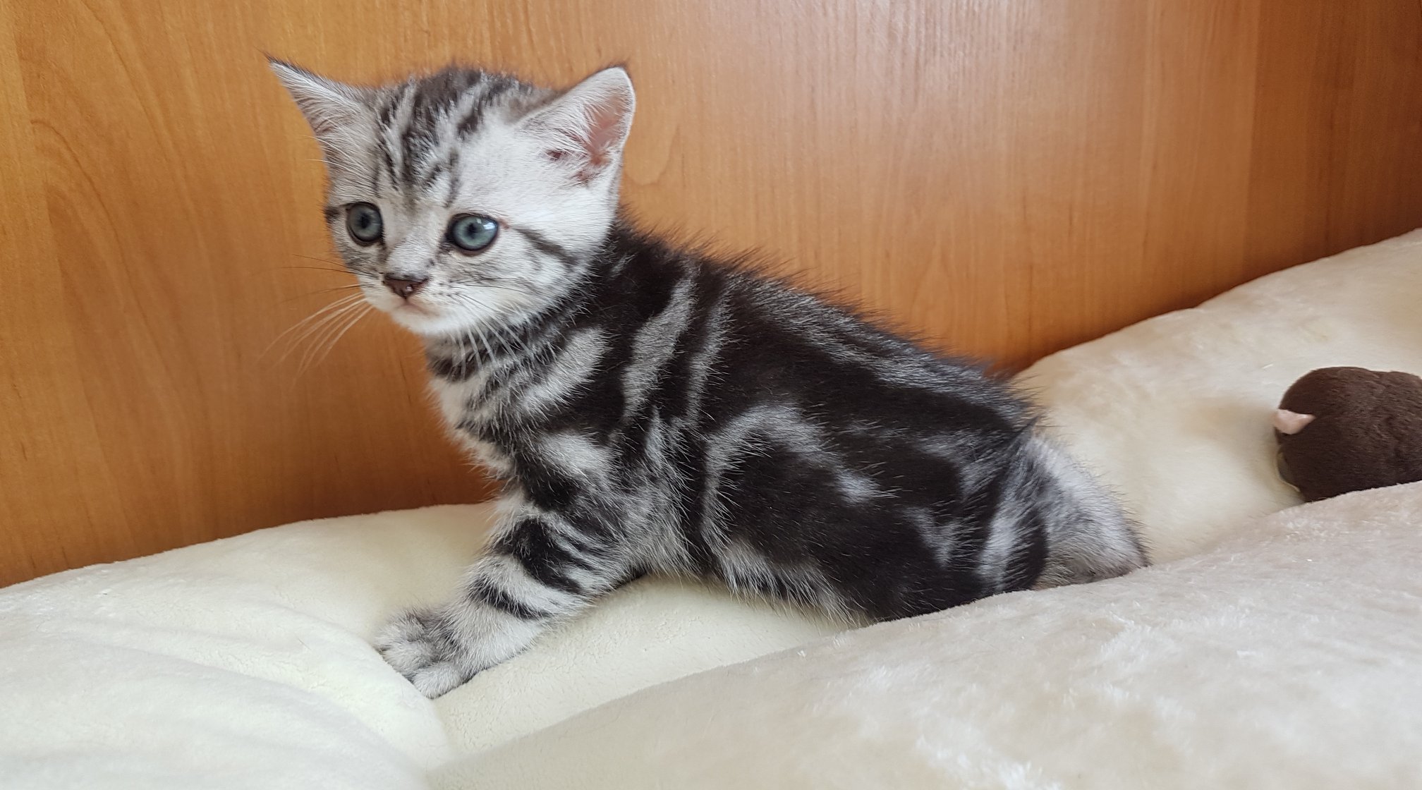 Informacje:tytuł, imię kota: ROCKY SILVER SUN*PL płeć: kocur kolor: BSH ns 2264 data urodzenia: 2020-04-20 ojciec: SC VALENTINO VAN SONSWIJCK *NL, DVM matka: GIC KATIE Silver Sun *PL Opis:Rocky jest największym chłopcem z miotu. Urodził się 20 kwietnia wraz z siostrą Romą i bratem Rafim. Jest przywódcą stada i pierwszy zaczyna zabawy. Uwielbia żółtko - to dla niego wyjątkowy przysmak. Zawsze zadowolony i rozmruczany. To taki trochę koto-pies. Chodzi za człowiekiem jak mały psiak. Pod warunkiem, że nie jest zajęty zabawą.